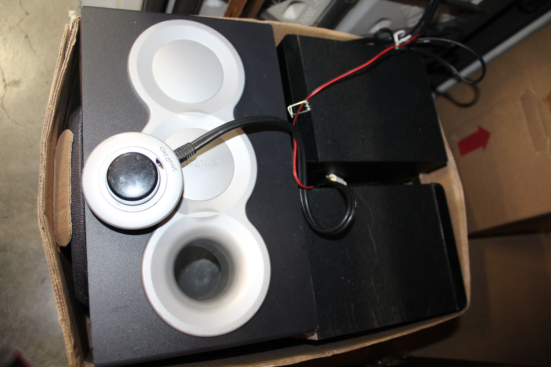 2 PHILIPS SPEAKERS AND CREATIVE SUB WOOFER