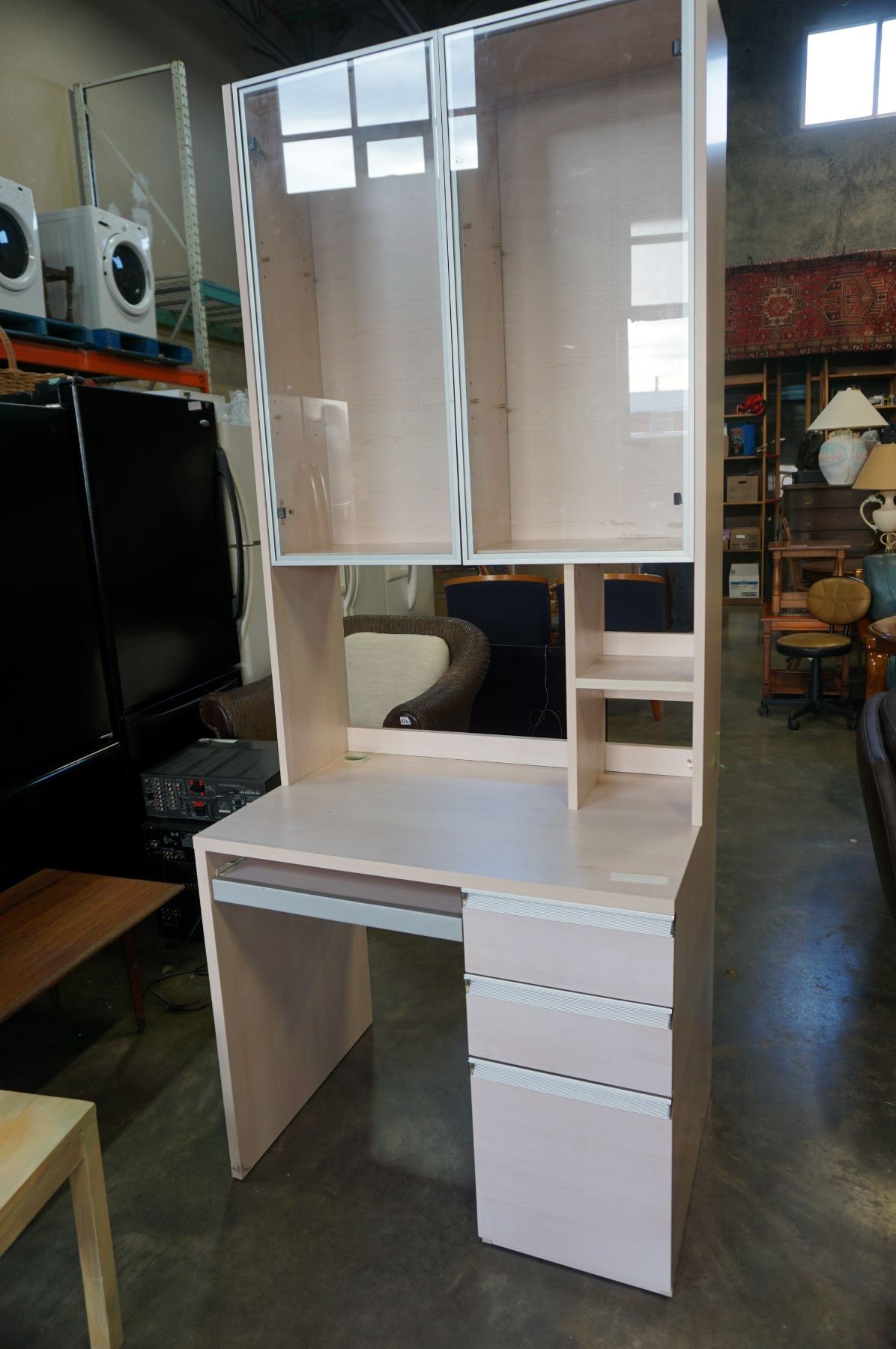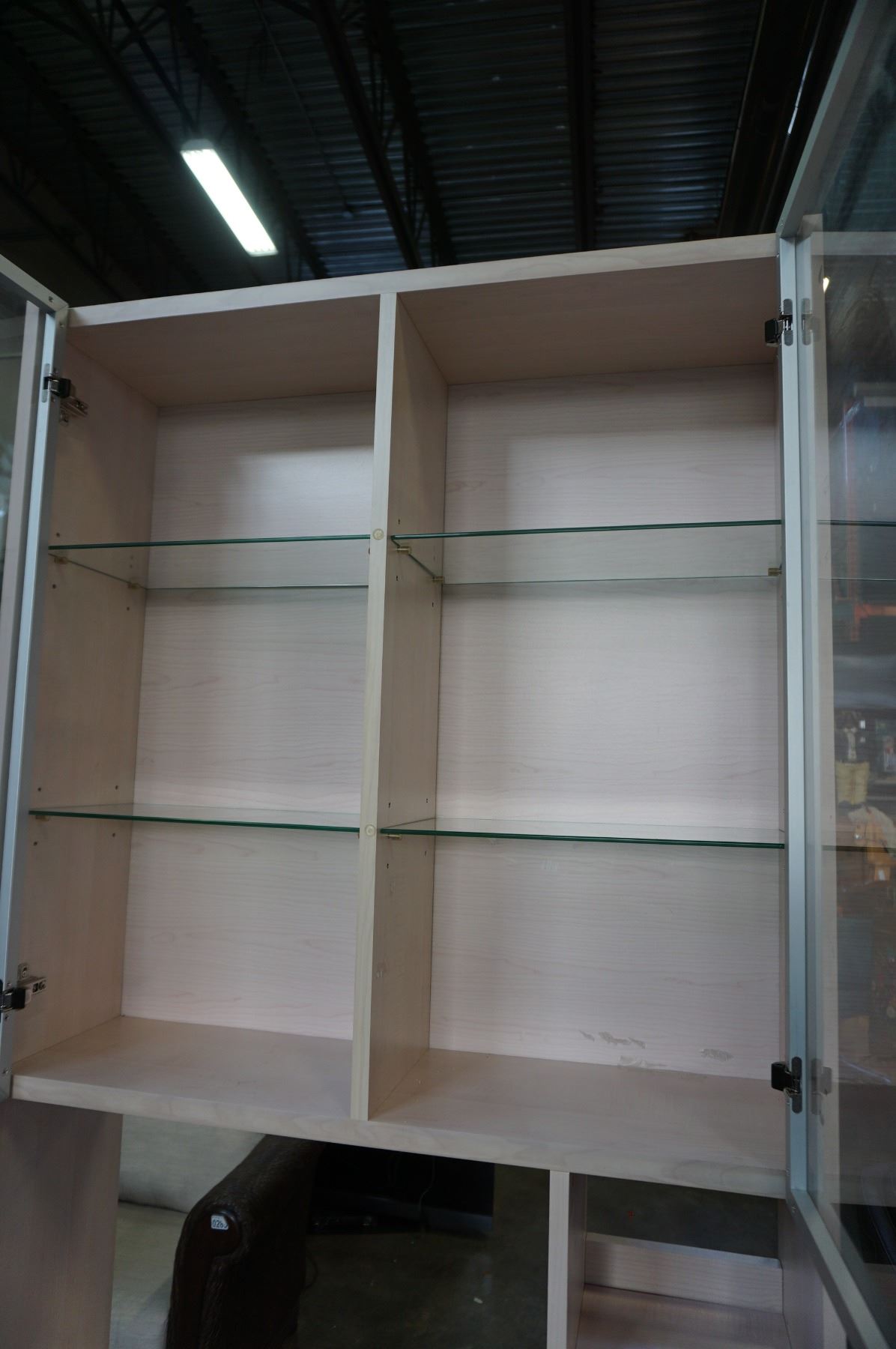 2 PIECE DESK W/ GLASS DOOR CUPBOARDS