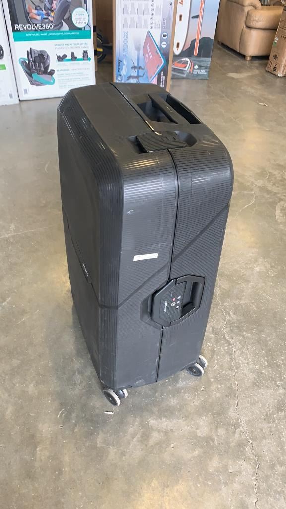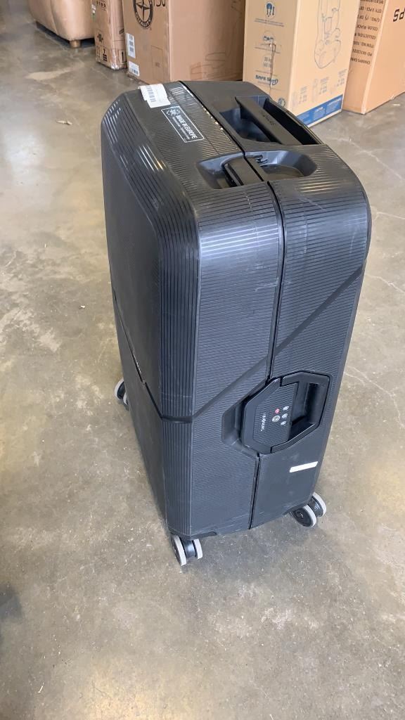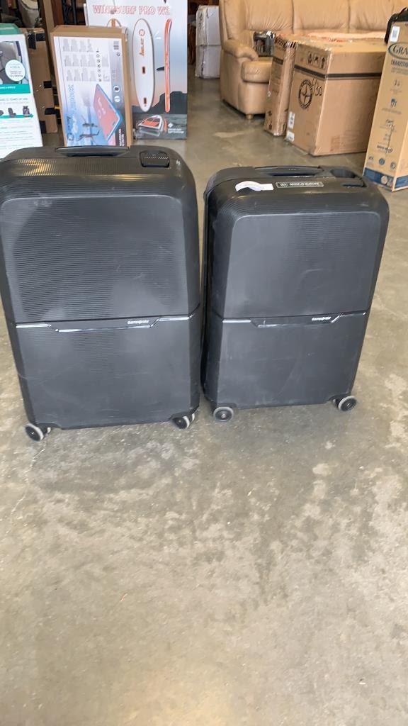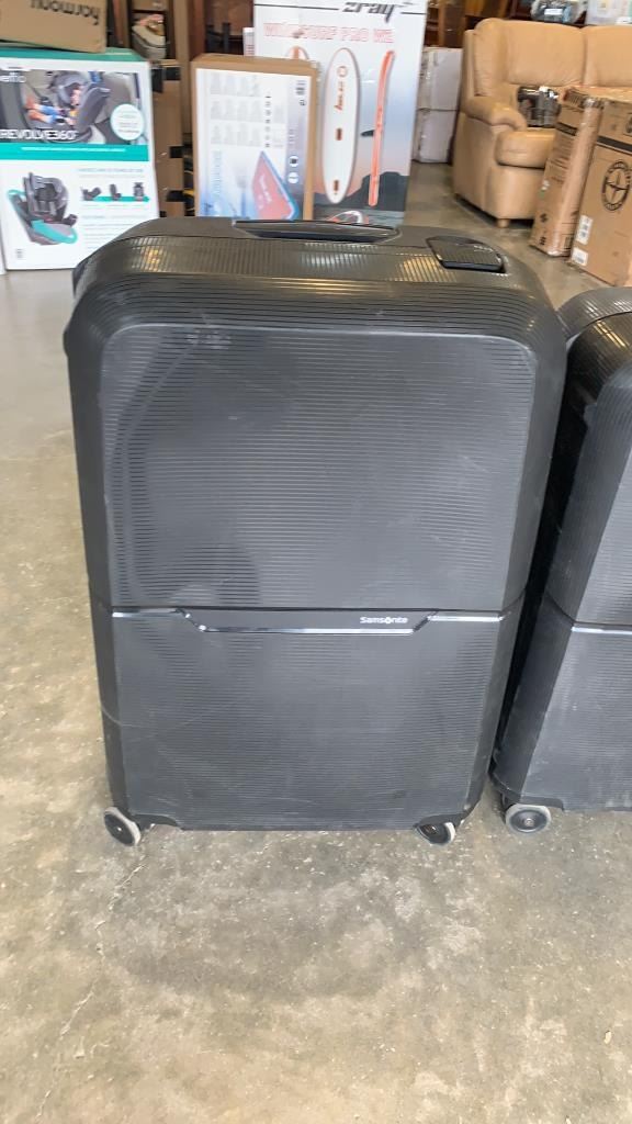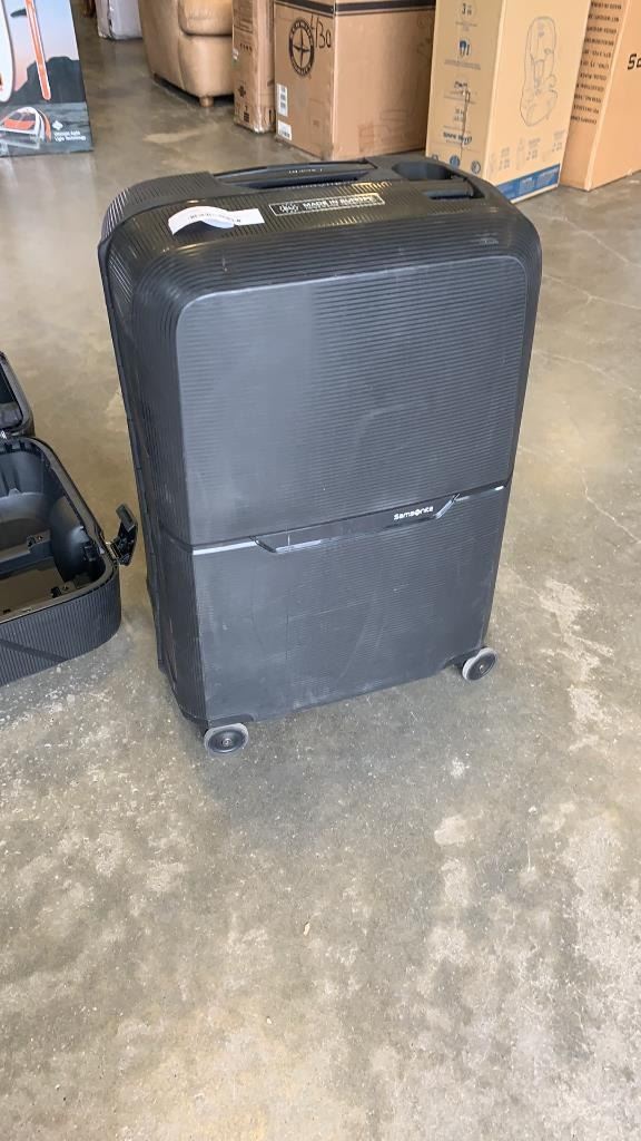 2 PIECE SAMSONITE MAGNUM ECO MEDIUM AND LARGE BLACK LUGGAGE - RETAIL $723 - ONE CLIP BROKEN ON MEDIUM LUGGAGE