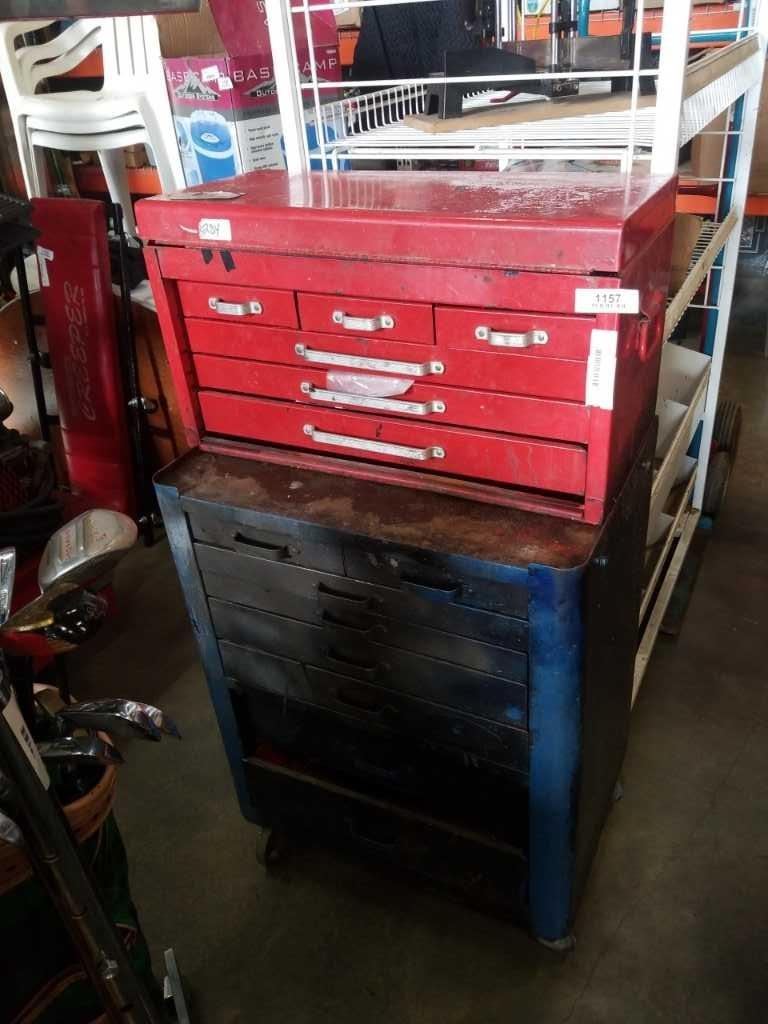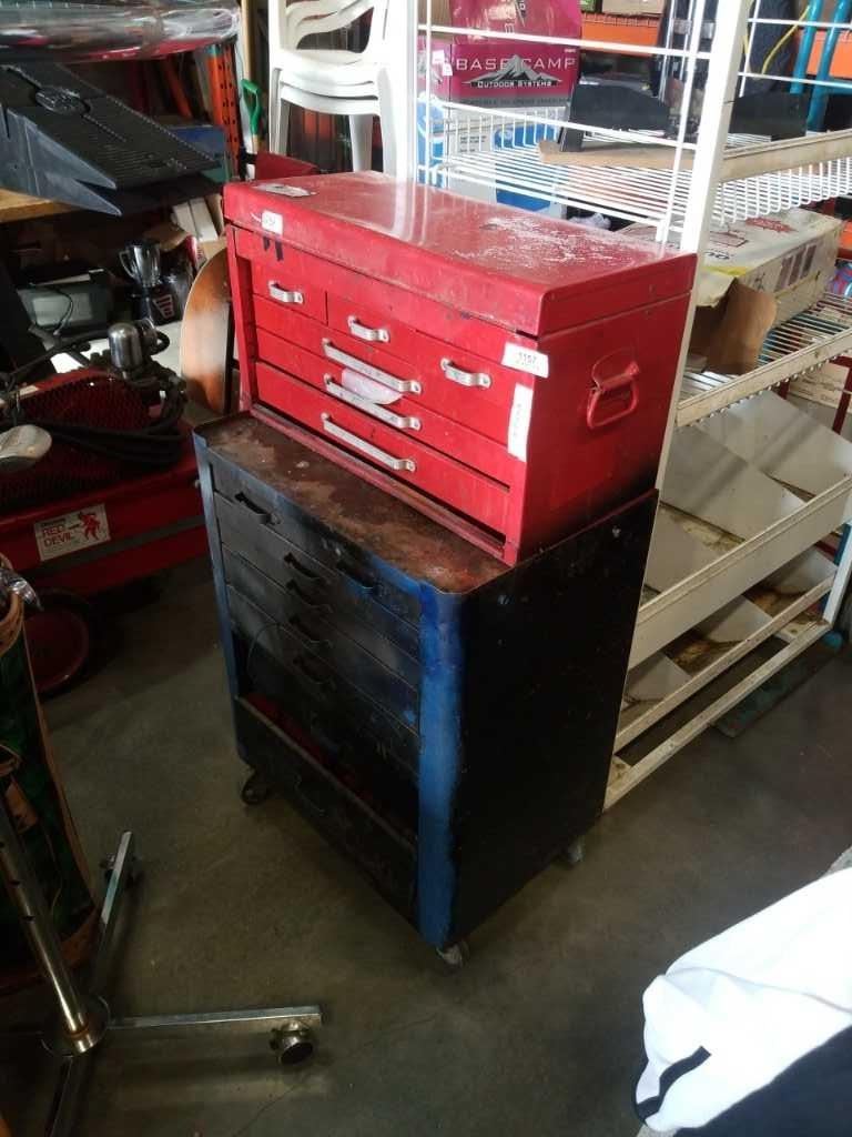 2 PIECE TOOL CHEST WITH CONTENTS - TOOLS, SOCKETS, ETC