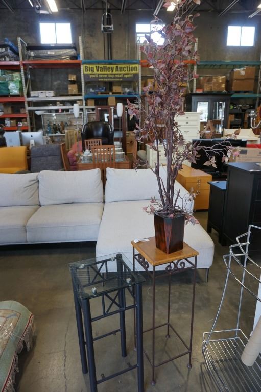 2 PLANTER STANDS AND ARTIFICIAL PLANT