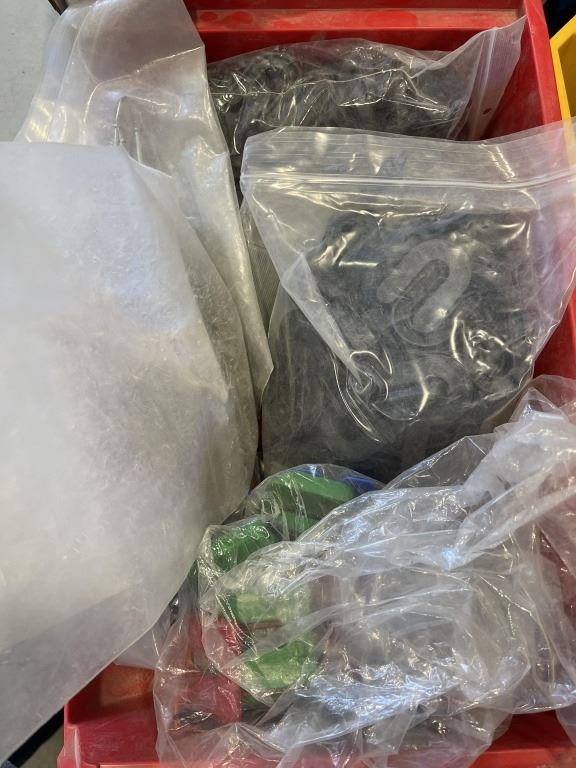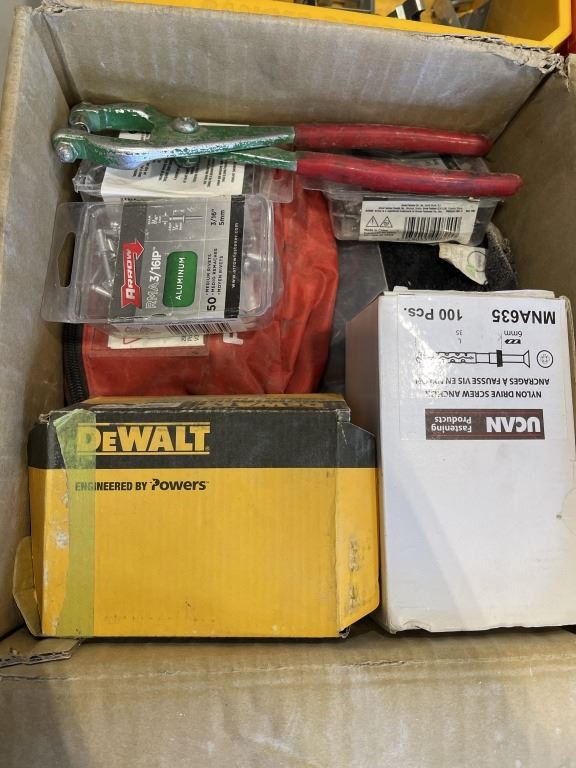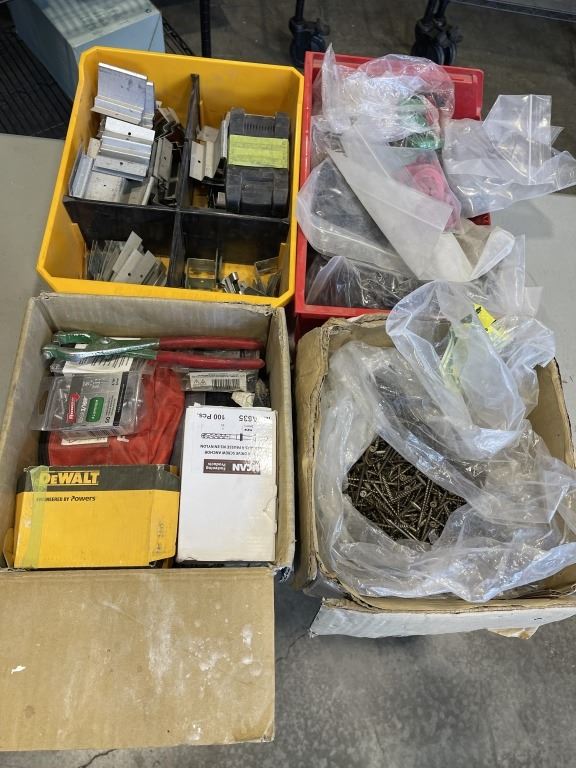 2 PLASTIC ORGANIZERS OF ASSORTED SHOP HARDWARE, ANCHORS, EXTERIOR SCREWS ETC