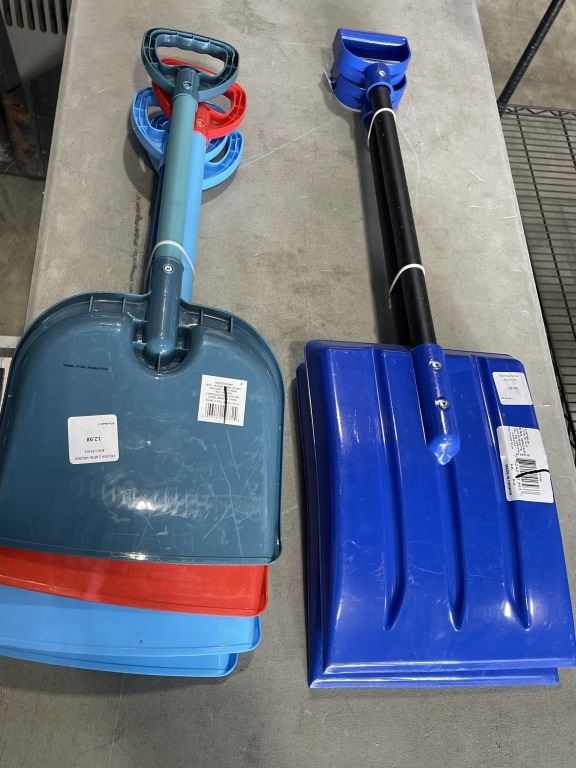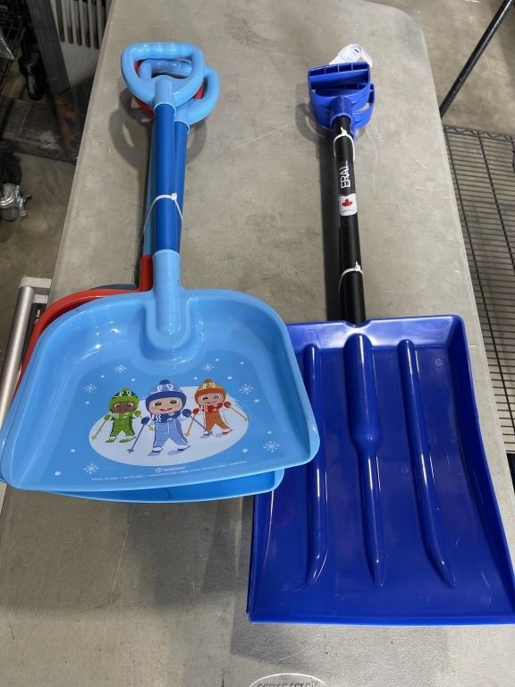 2 PLASTIC SNOW SHOVELS AND 4 KIDS SNOW SHOVELS