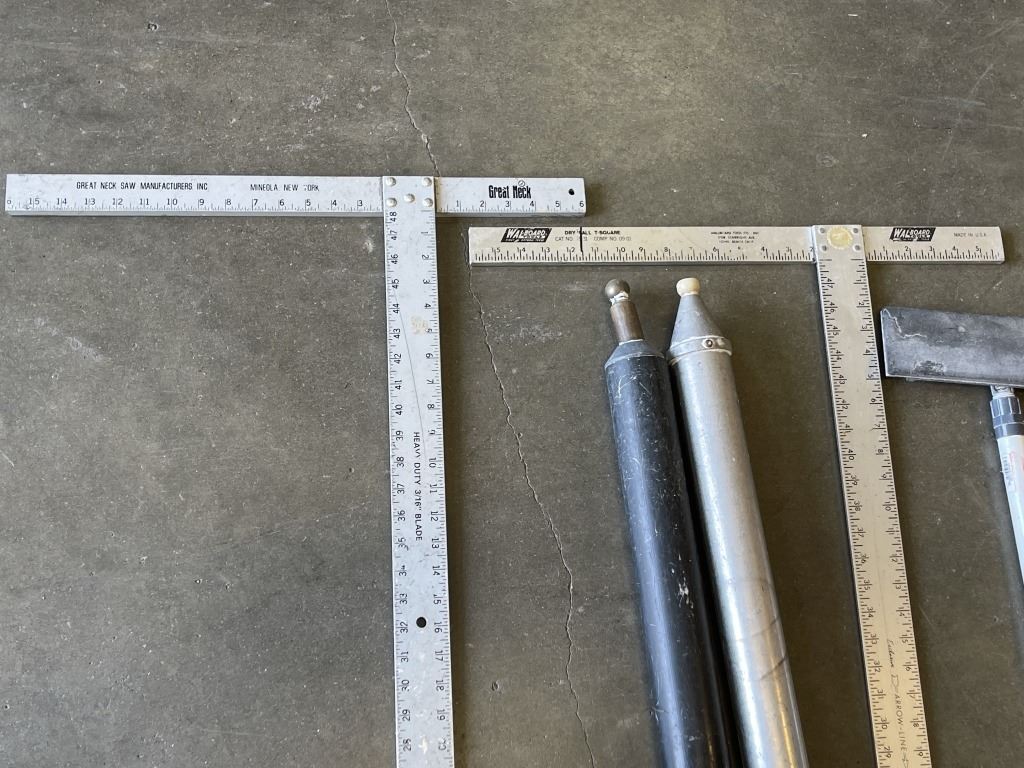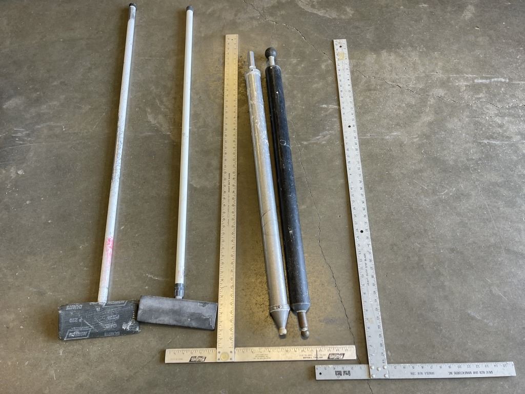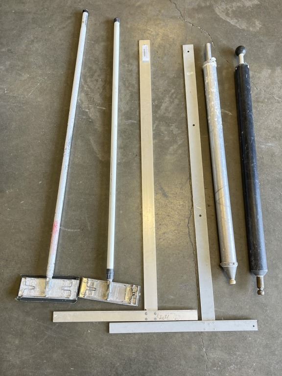 2 POLE SANDERS, 2 DRYWALL MUD PUMPS, AND 2 SQUARE LEVELS