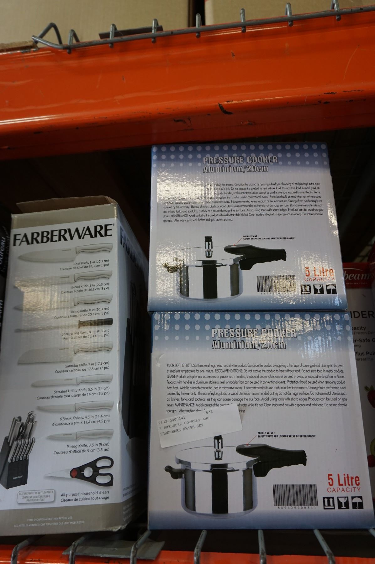 2 PRESSURE COOKERS AND FABERWARE KNIFE SET