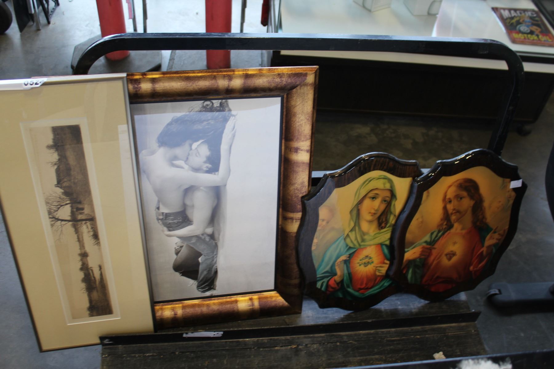 2 PRINTS AND RELIGIOUS ART ON BURL