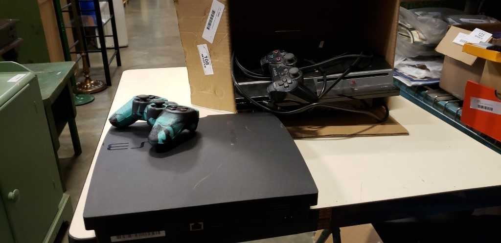 2 PS3 consoles and two controllers with PS2 console and controllers
