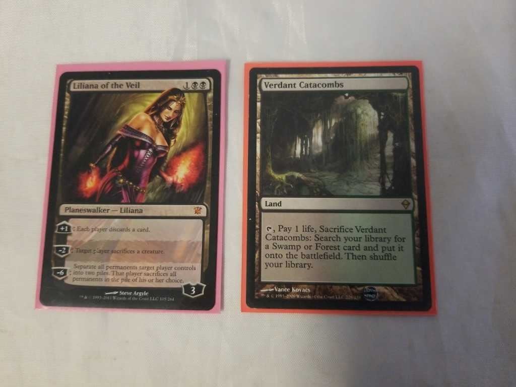 2 RARE MAGIC THE GATHERING CARDS LILIANA OF THE VEIL MYTHIC RARE PLANESWALKER AND VERDANT CATACOMBS SEARCH LAND