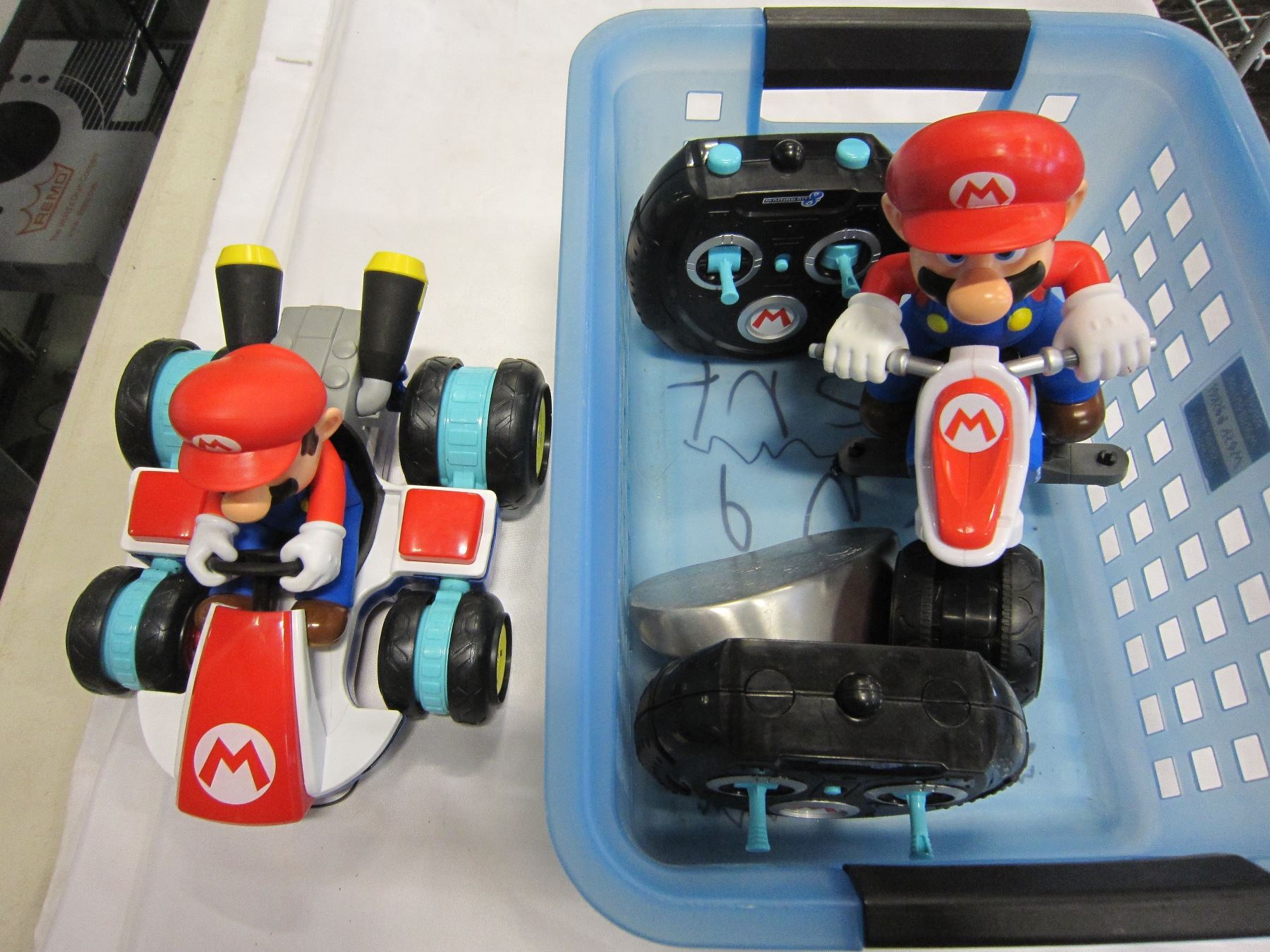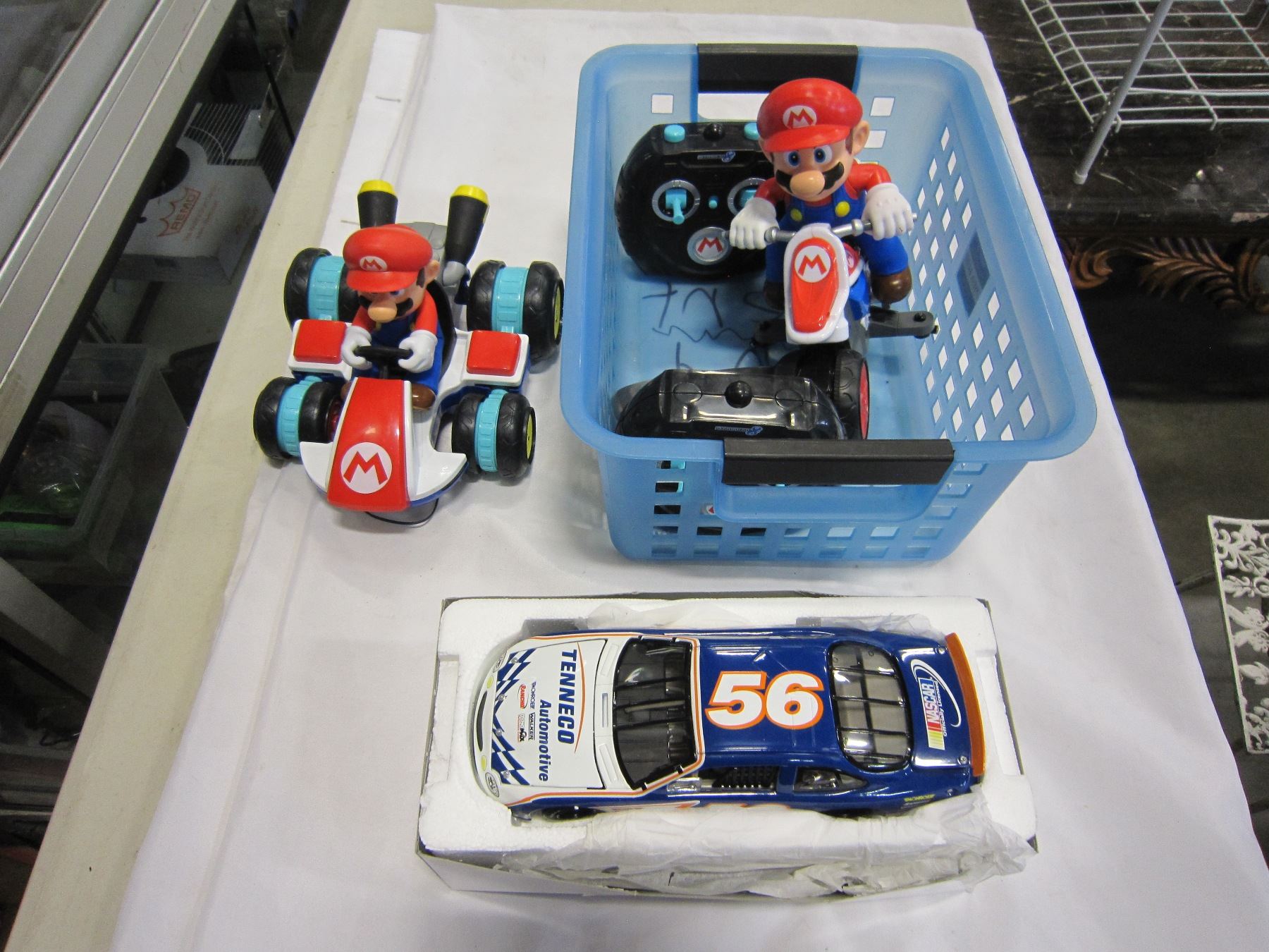 2 REMOTE CONTROL MARIO CARTS AND CAST CAR