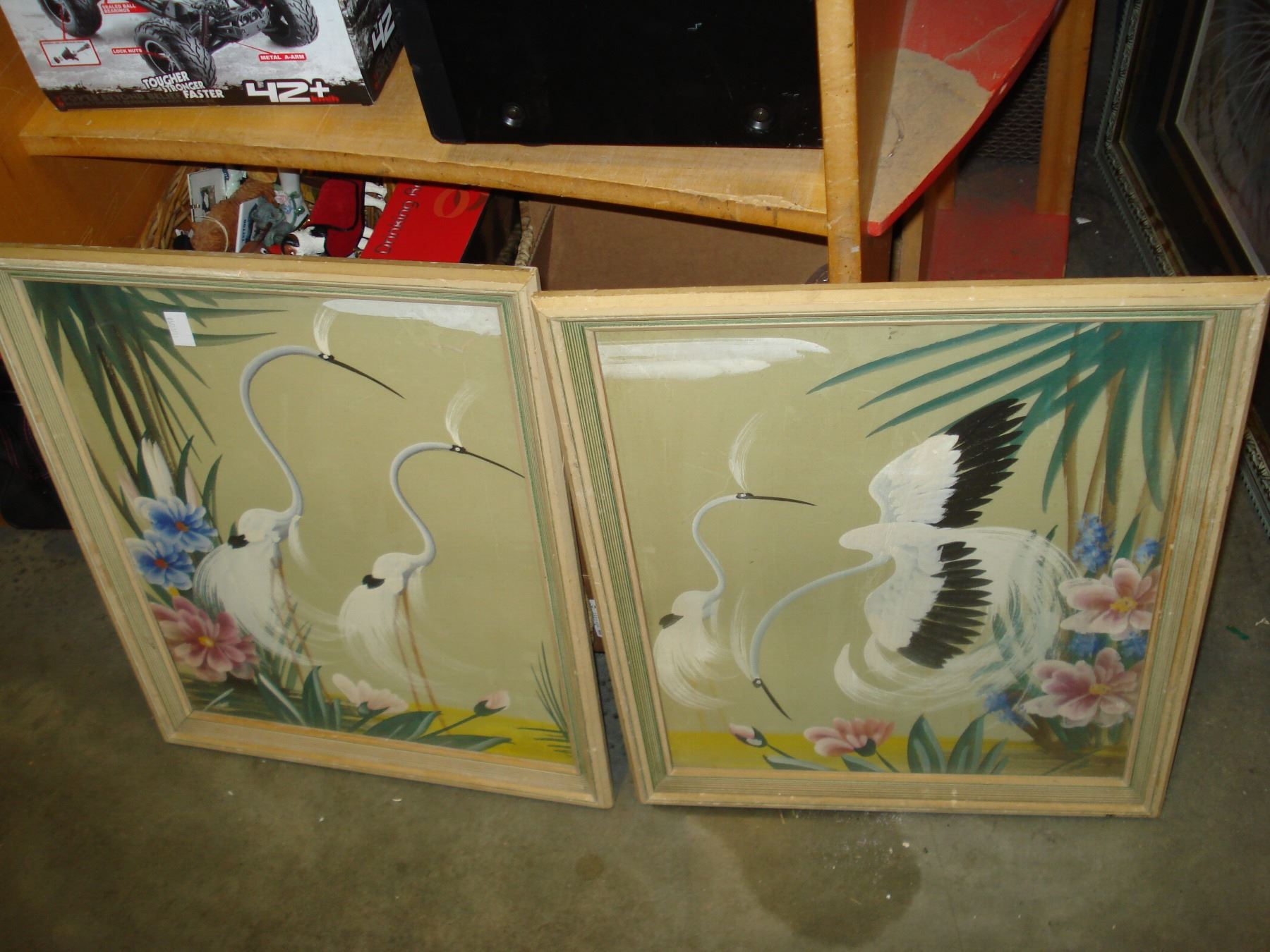 2 RETRO WATER COLOR STORKS