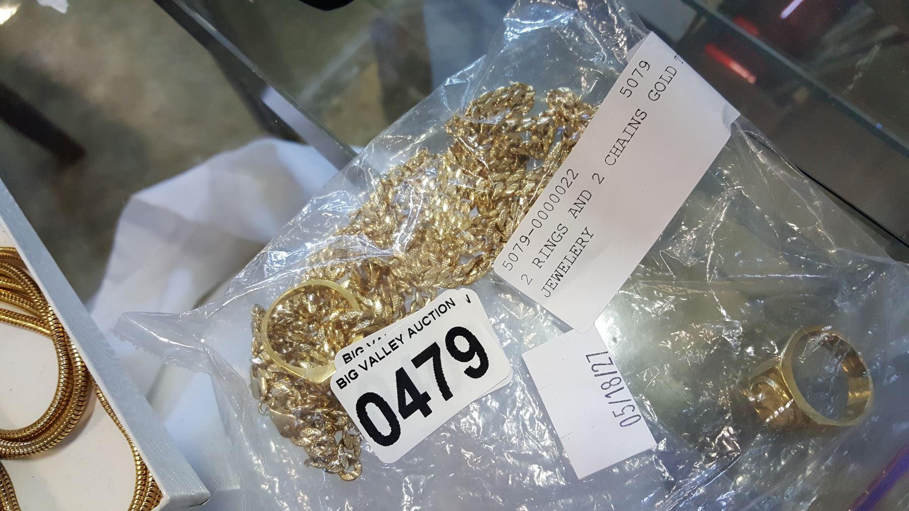 2 RINGS AND 2 CHAINS GOLD TONE JEWELERY