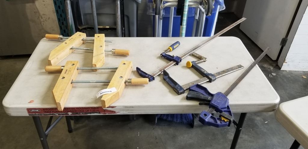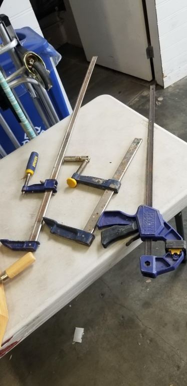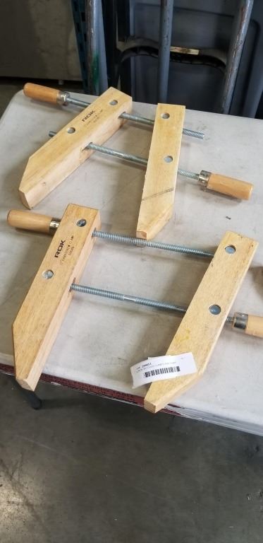 2 ROK WOODEN CLAMPS AND 3 BAR CLAMPS