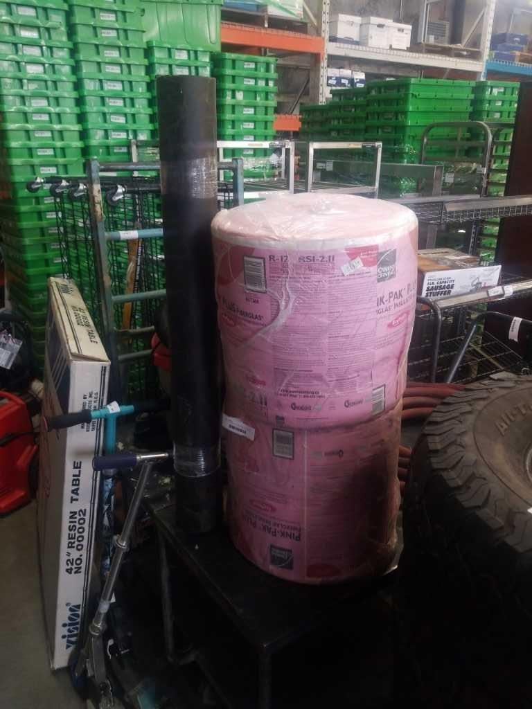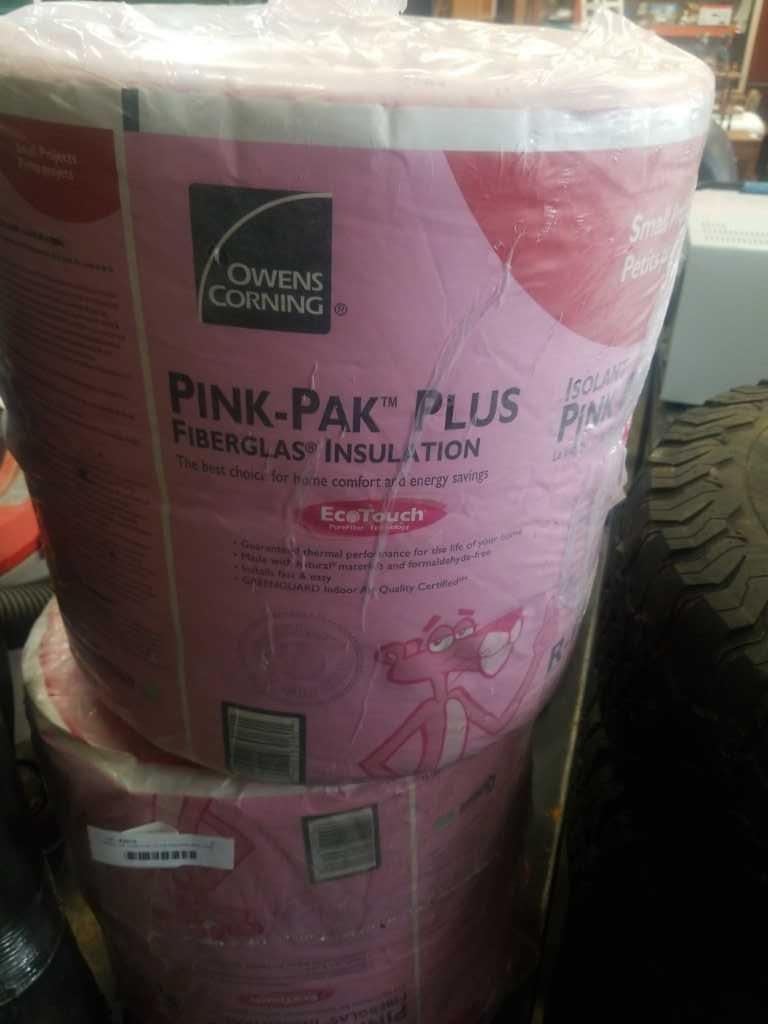 2 ROLLS OF PINK PAK PLUS FIBERGLASS AND ROLL OF CONSTRUCTION PAPER