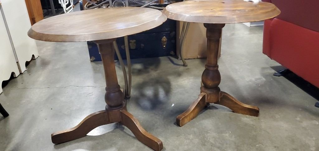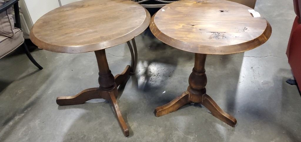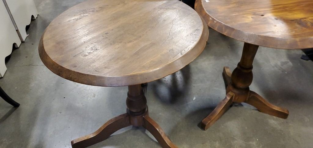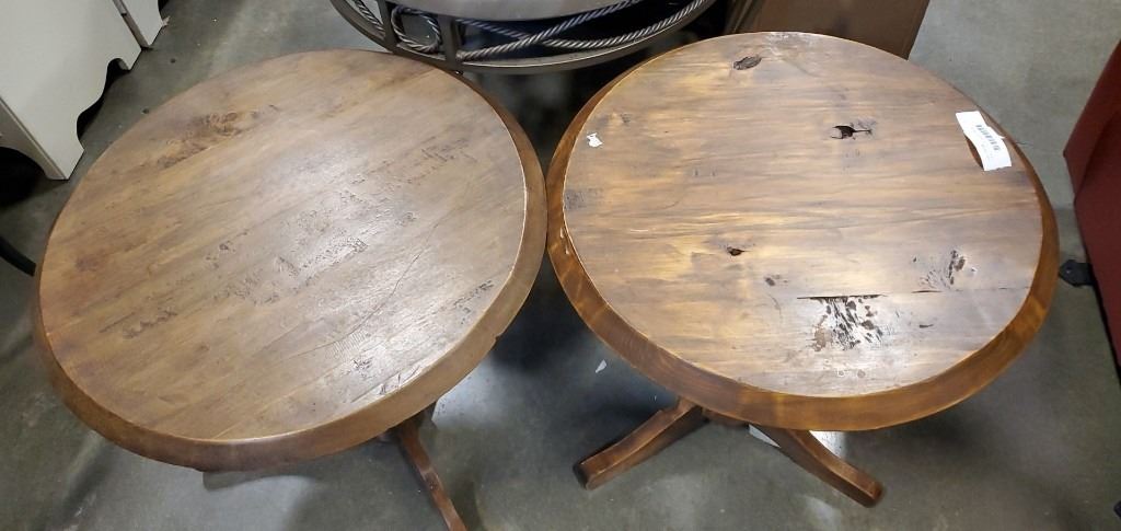 2 RUSTIC PINE ROUND SIDE TABLES