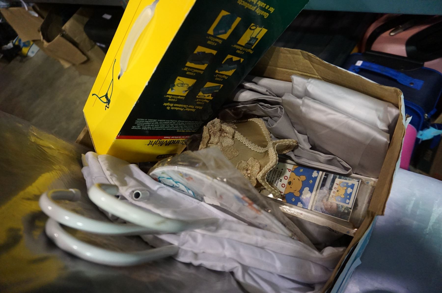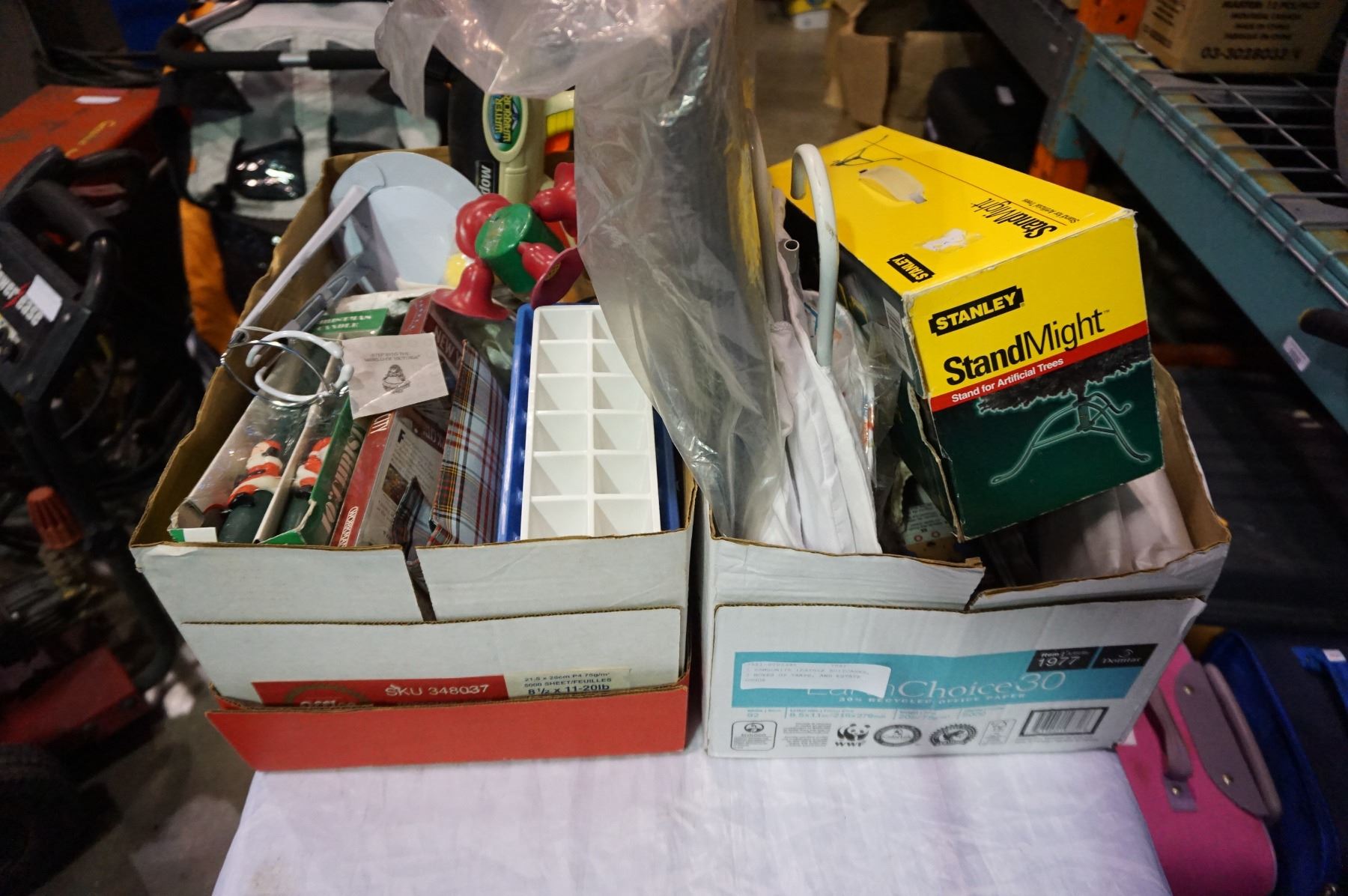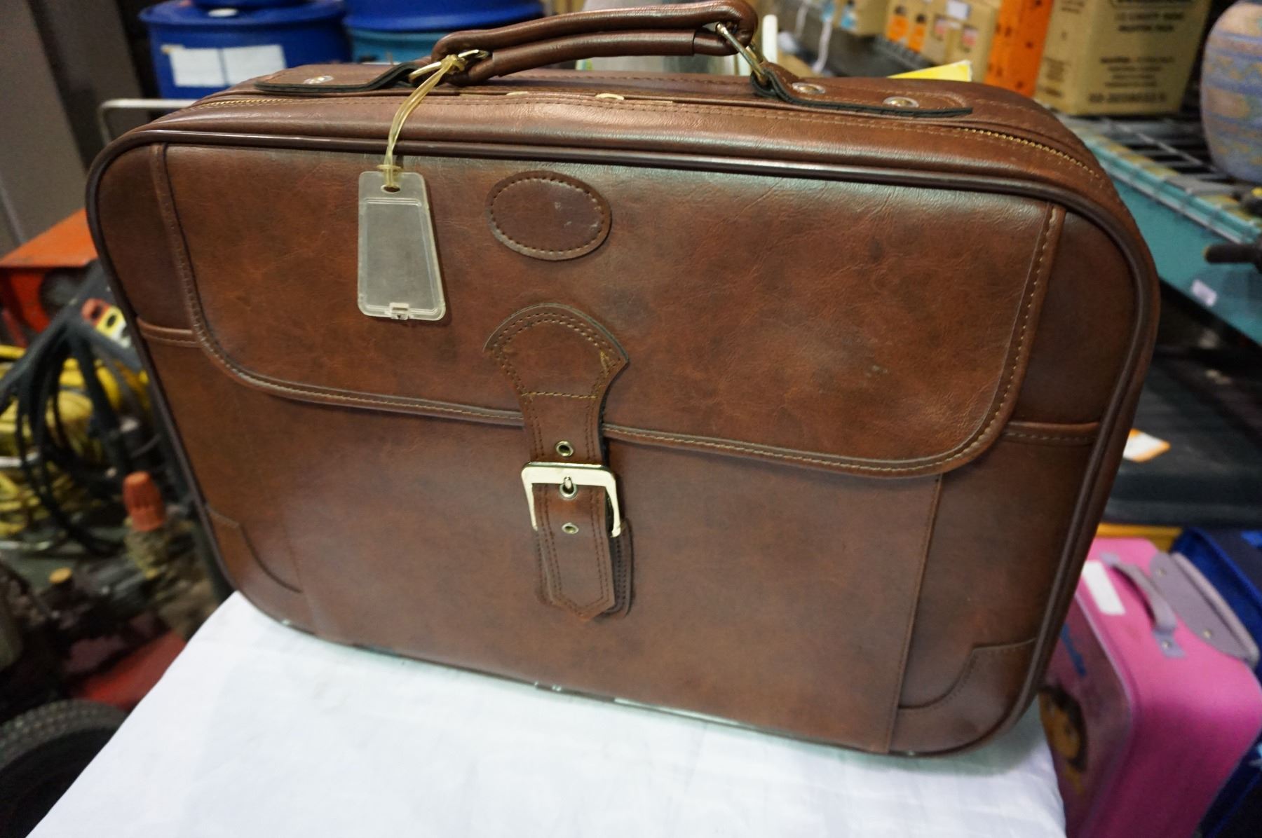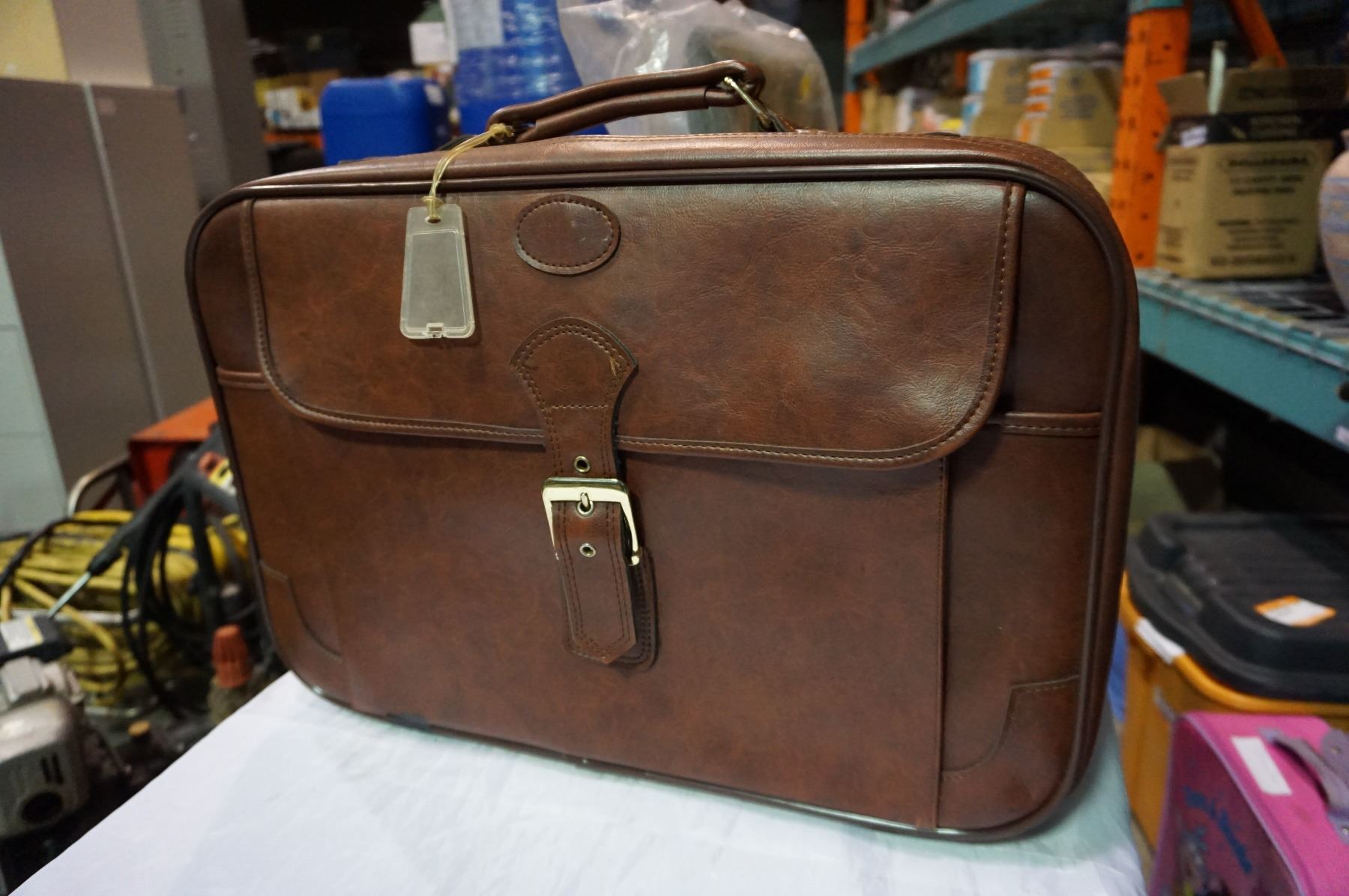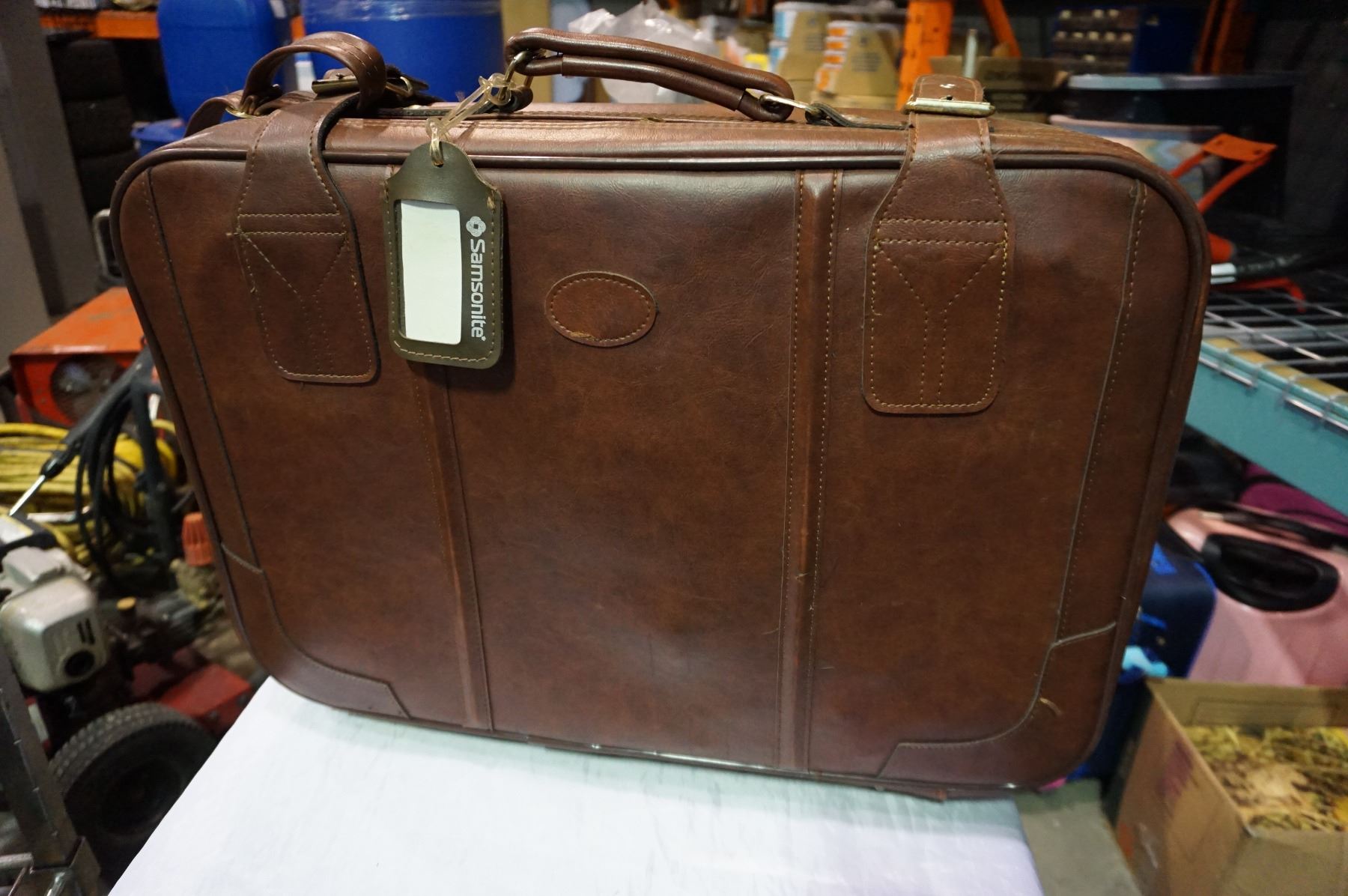 2 SAMSONITE LEATHER SUITCASES, 2 BOXES OF TARPS, AND ESTATE GOODS