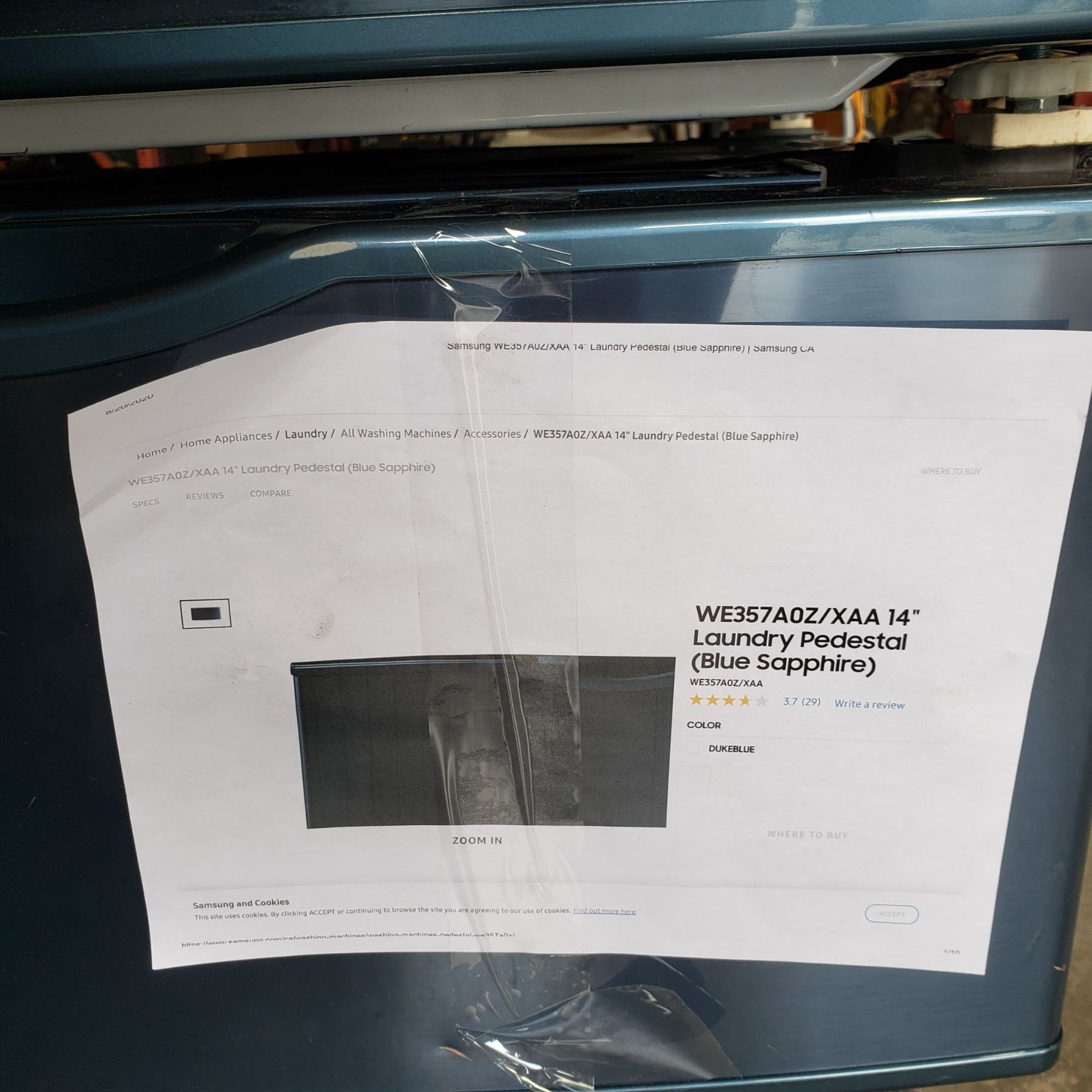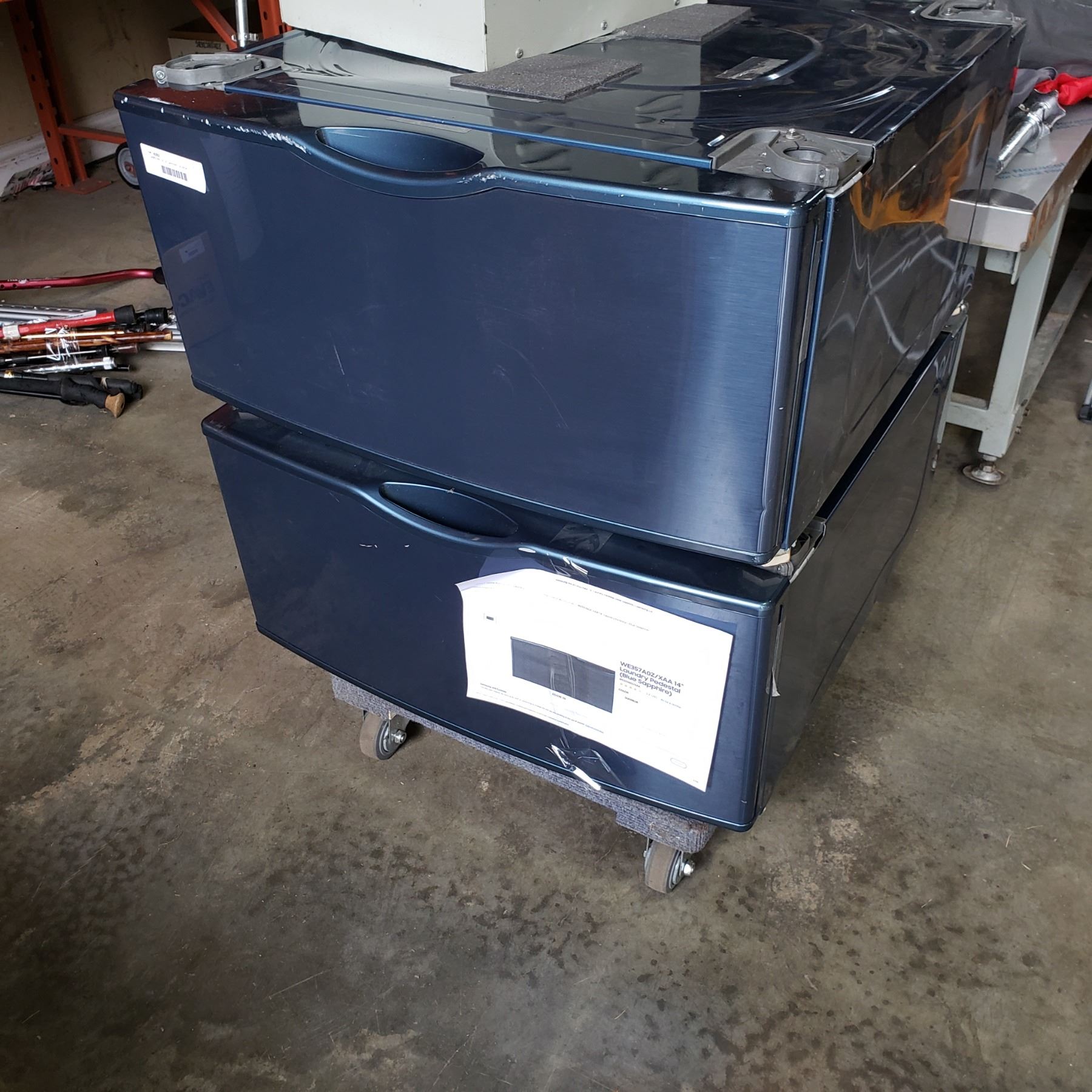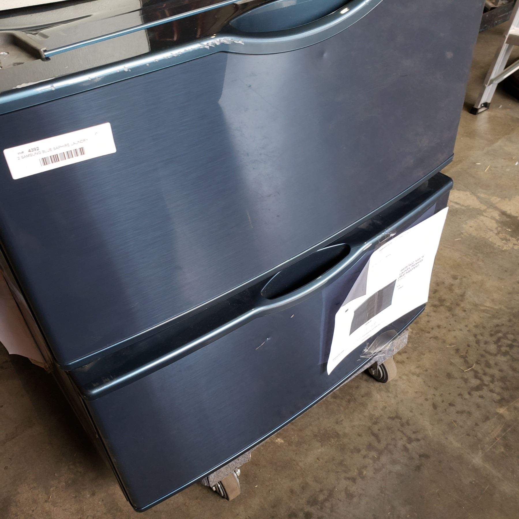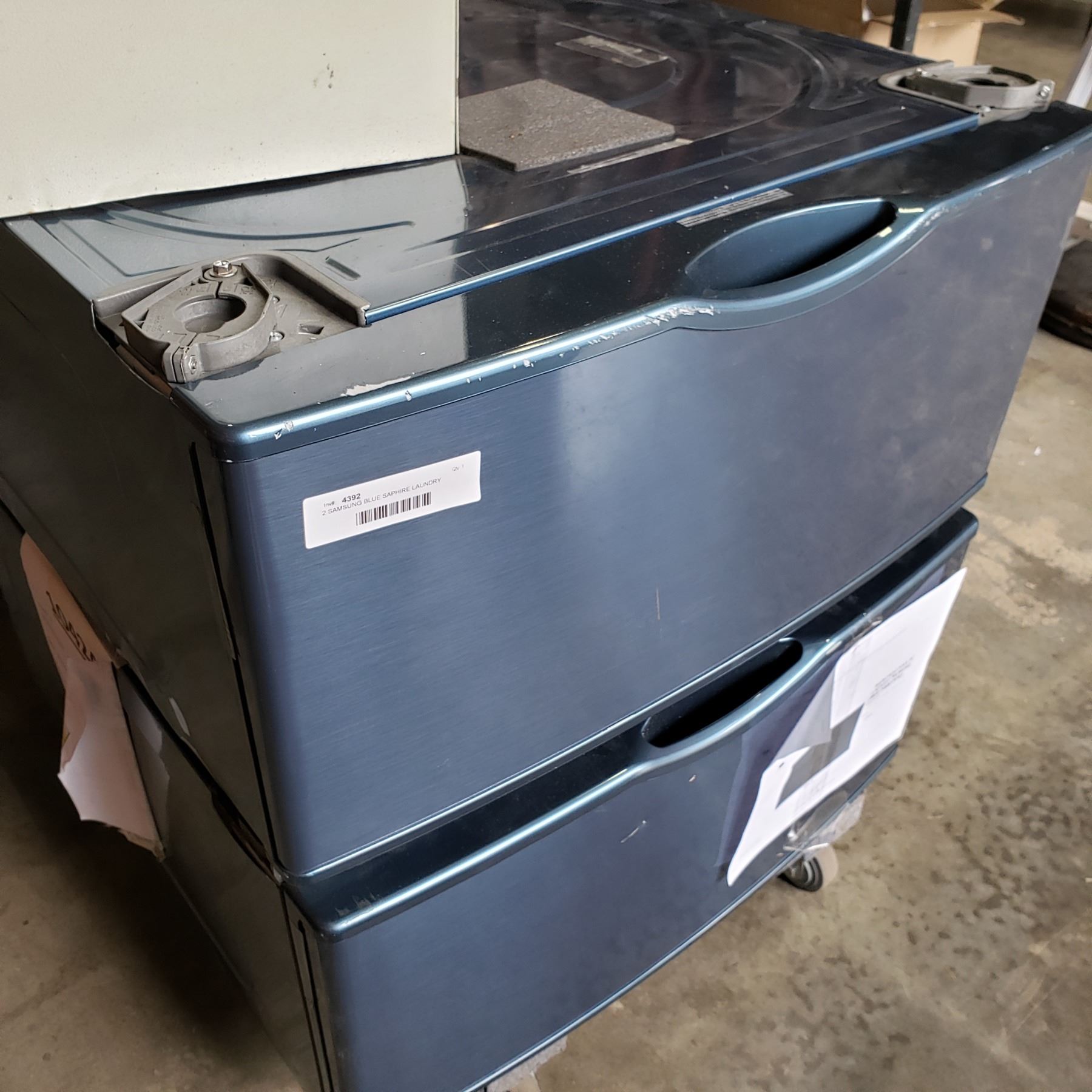 2 SAMSUNG BLUE SAPHIRE LAUNDRY MACHINE PEDESTALS WITH STORAGE DRAWERS