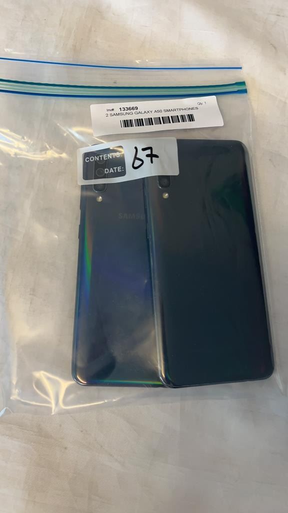 2 SAMSUNG GALAXY A50 SMARTPHONES - PARTS ONLY, NOT GUARANTEED TO WORK