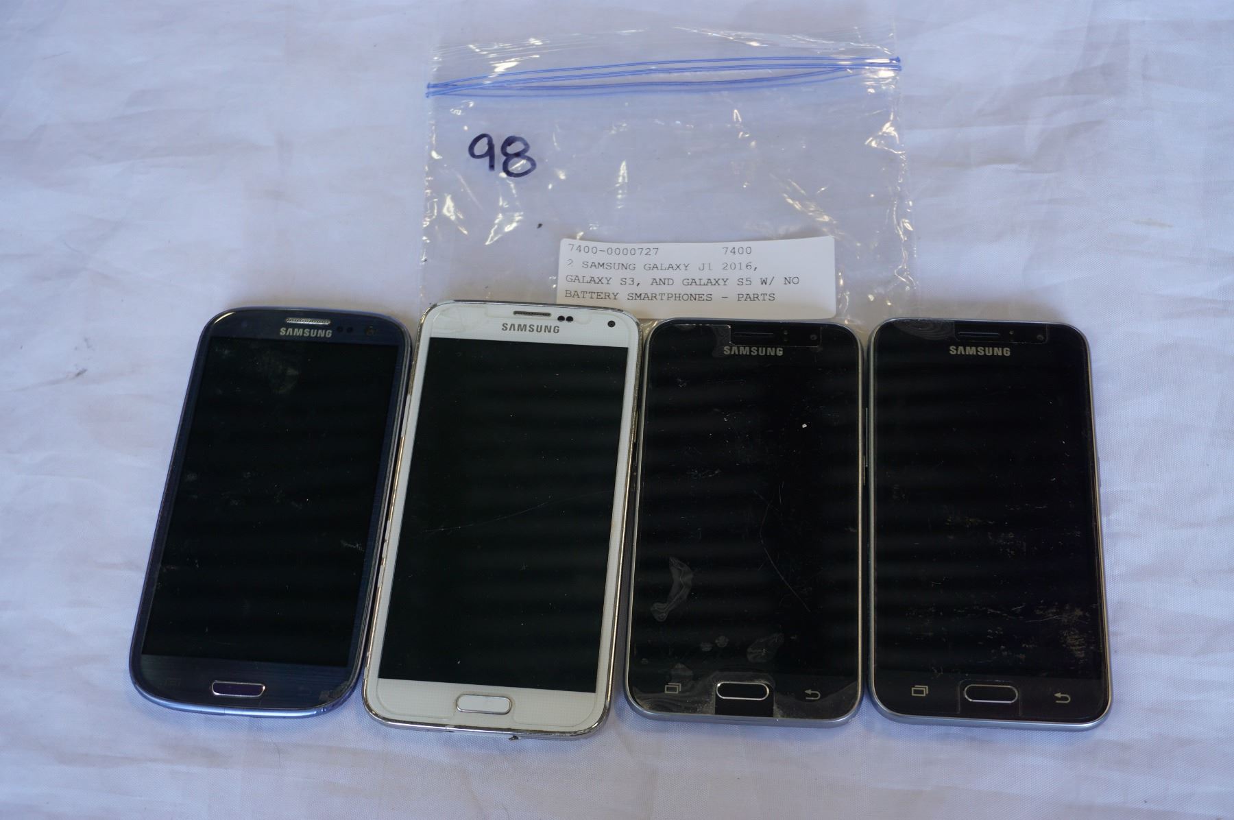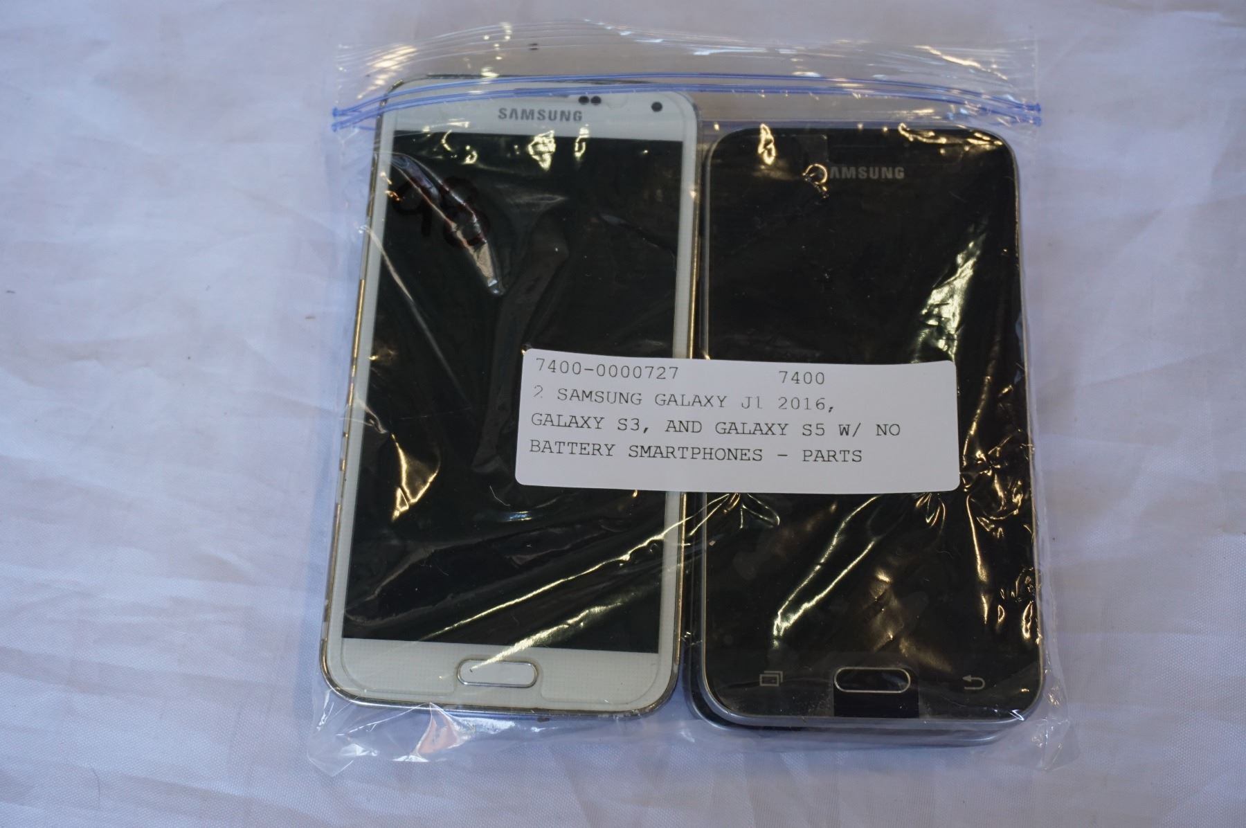 2 SAMSUNG GALAXY J1 2016, GALAXY S3, AND GALAXY S5 W/ NO BATTERY SMARTPHONES - PARTS ONLY
