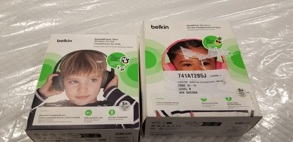 2 SETS OF BELKIN SOUNDFORM MINI WIRELESS ON EAR HEADPHONES FOR KIDS