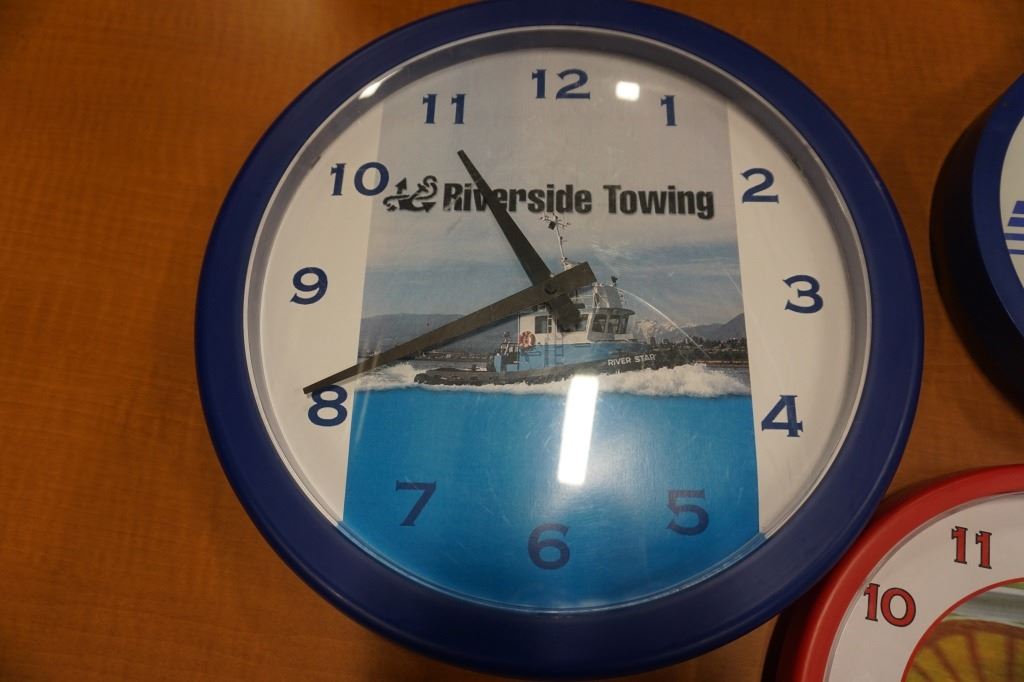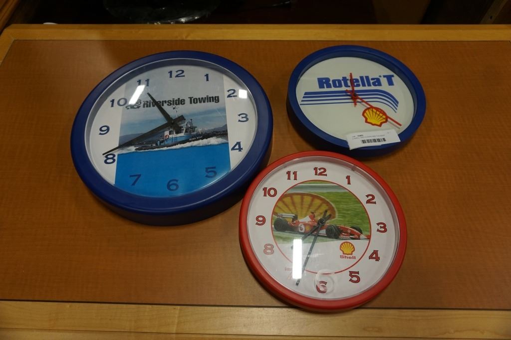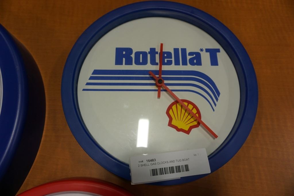 2 SHELL GAS CLOCKS AND TUG BOAT CLOCK