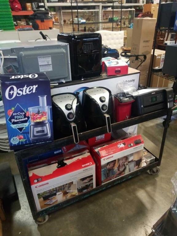 2 SHELVES OF DEFECTIVE STORE RETURN ELECTRONICS AND APPLIANCES