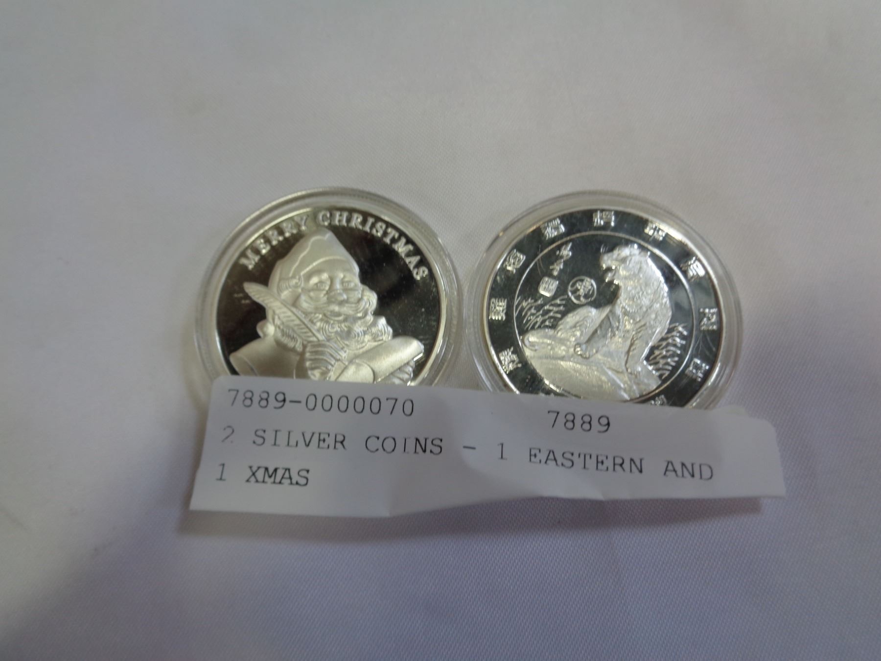 2 SILVER COINS - 1 EASTERN AND 1 XMAS
