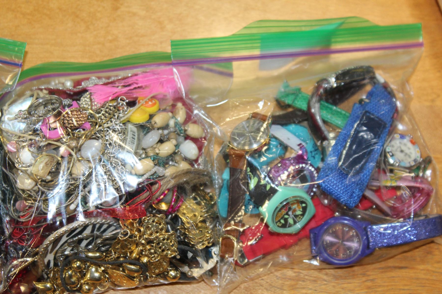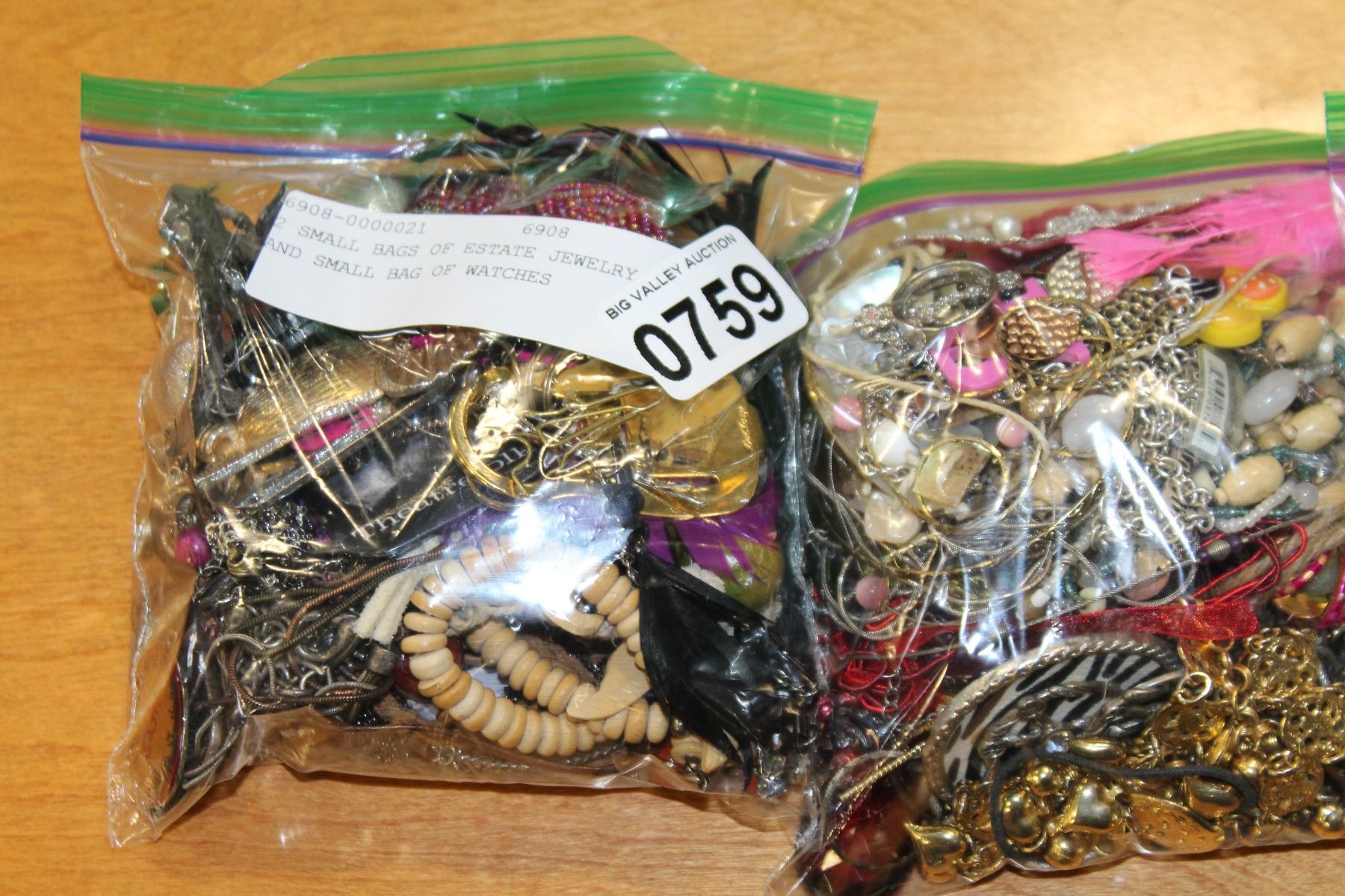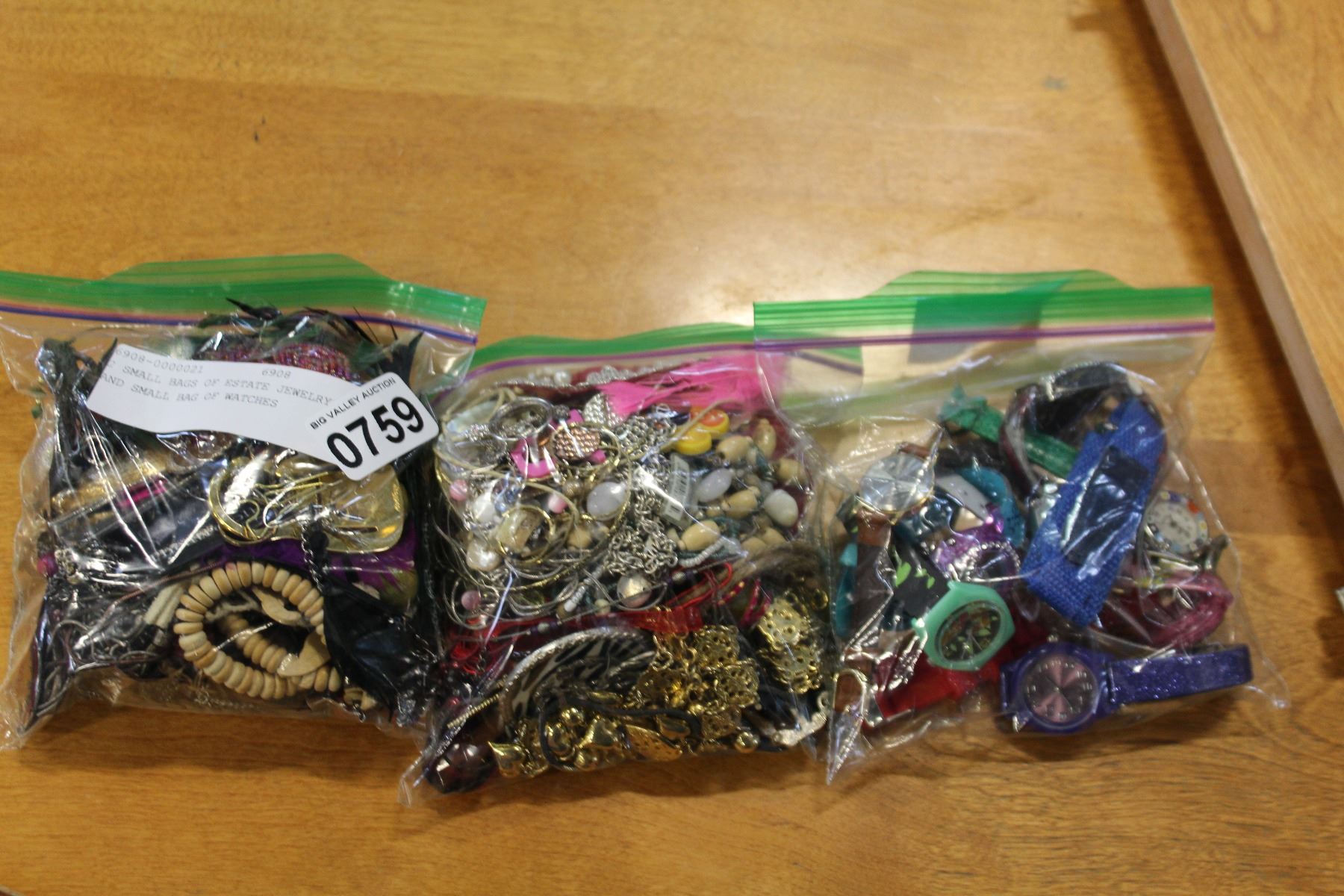 2 SMALL BAGS OF ESTATE JEWELRY AND SMALL BAG OF WATCHES