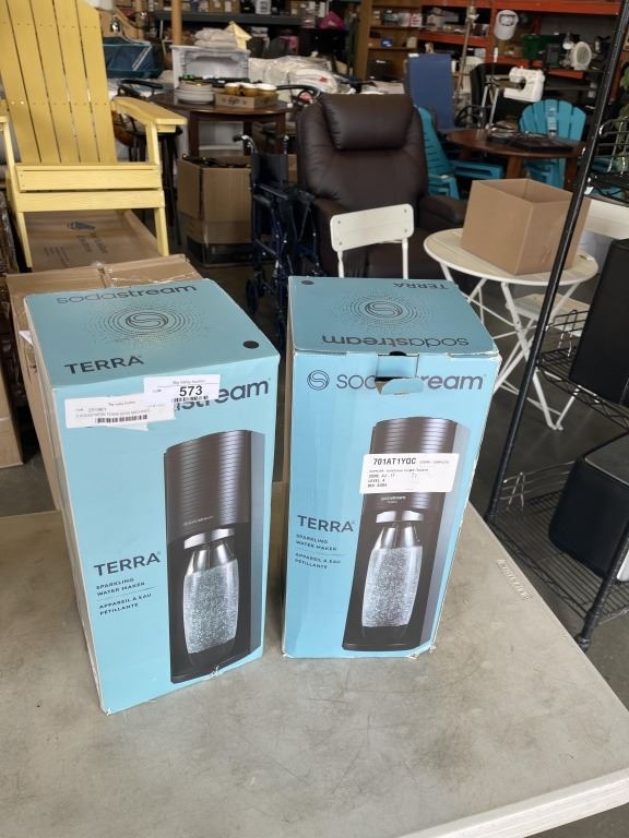 2 SODASTREAM TERRA SODA MACHINES - TESTED WORKING, RETAIL $298