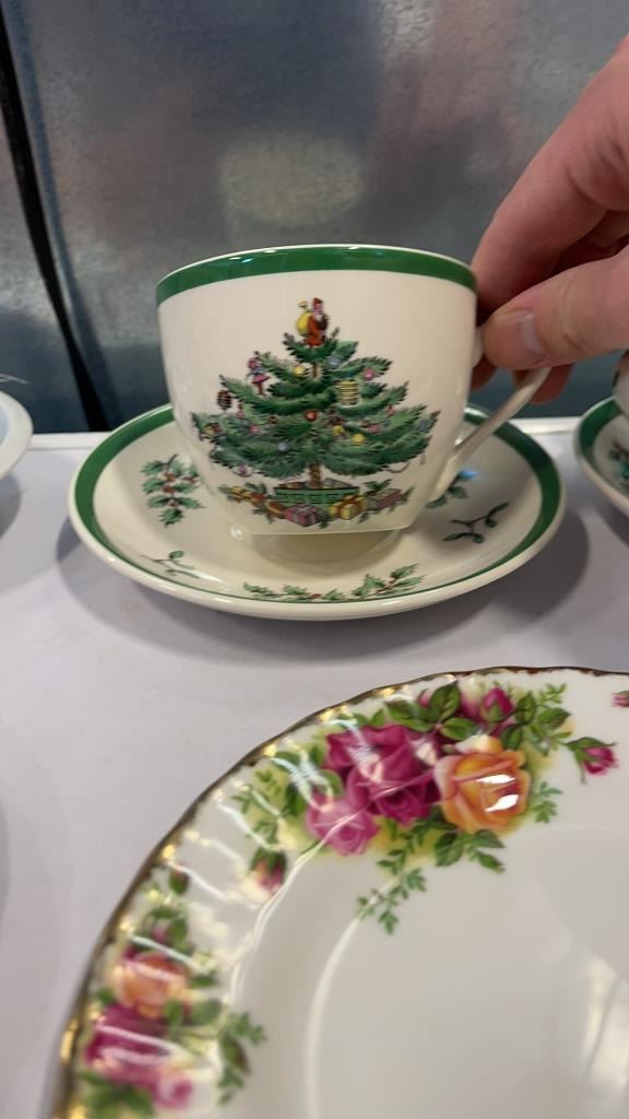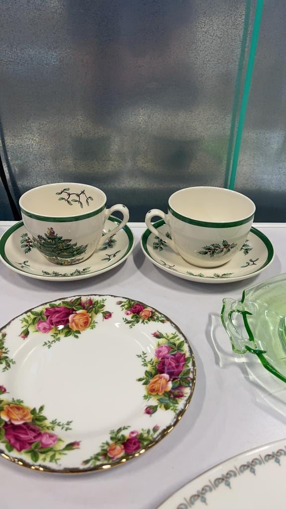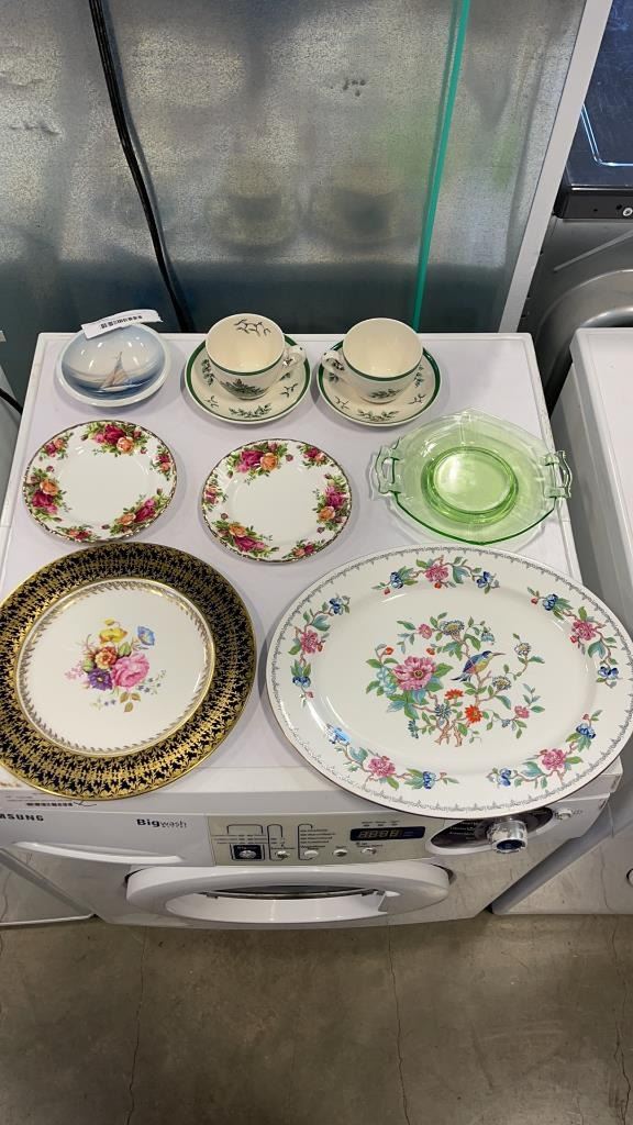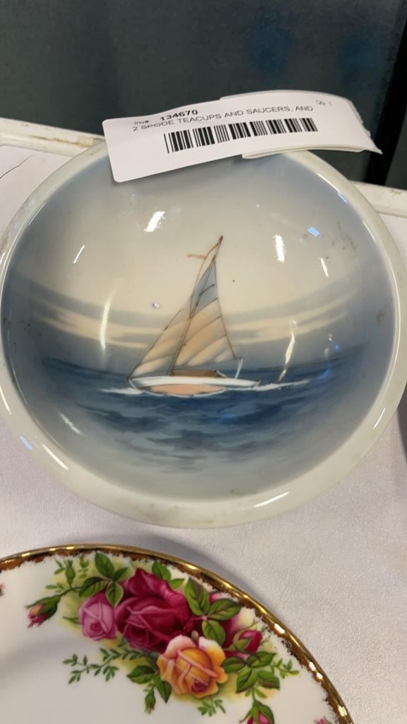 2 SPODE TEACUPS AND SAUCERS, AND ASSORTED CHINA