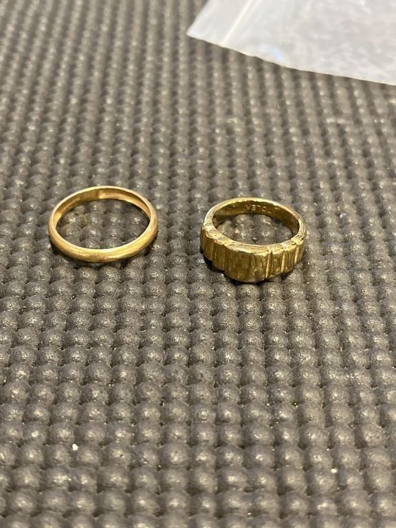 2 STAMPED GOLD TONE RINGS