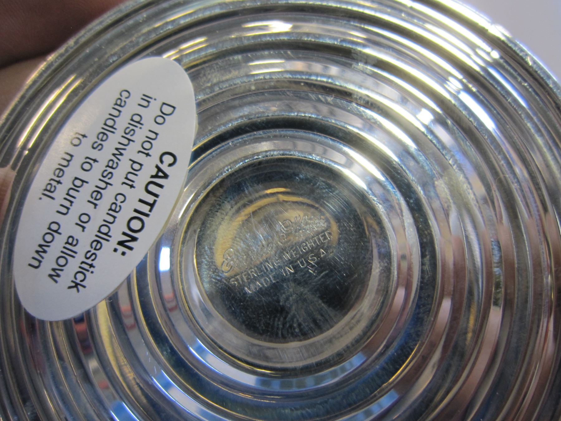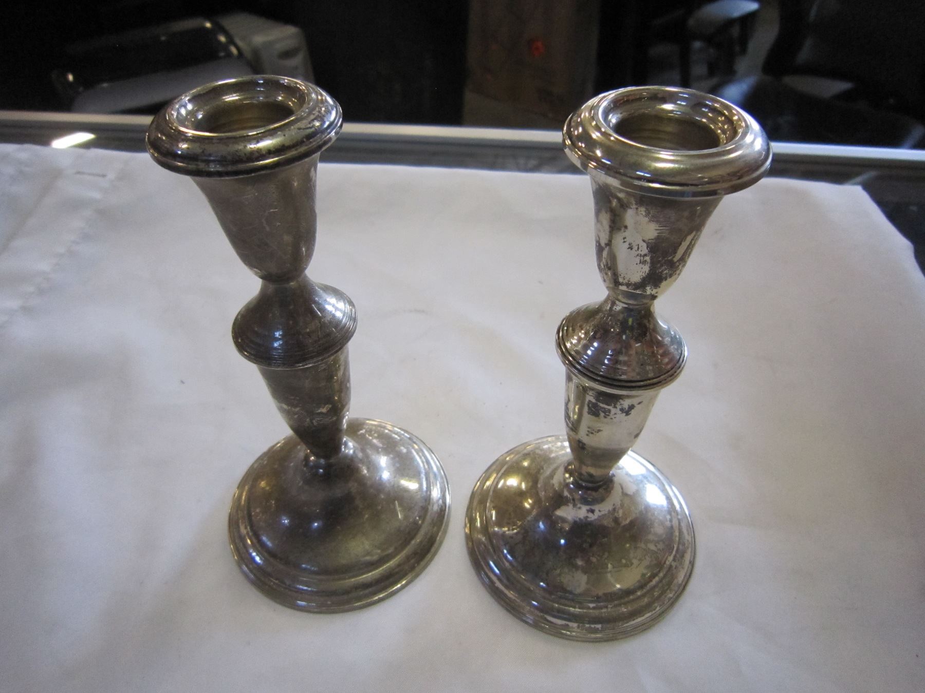 2 STERLING WEIGHTED CANDLE STANDS AND STAMP BOX