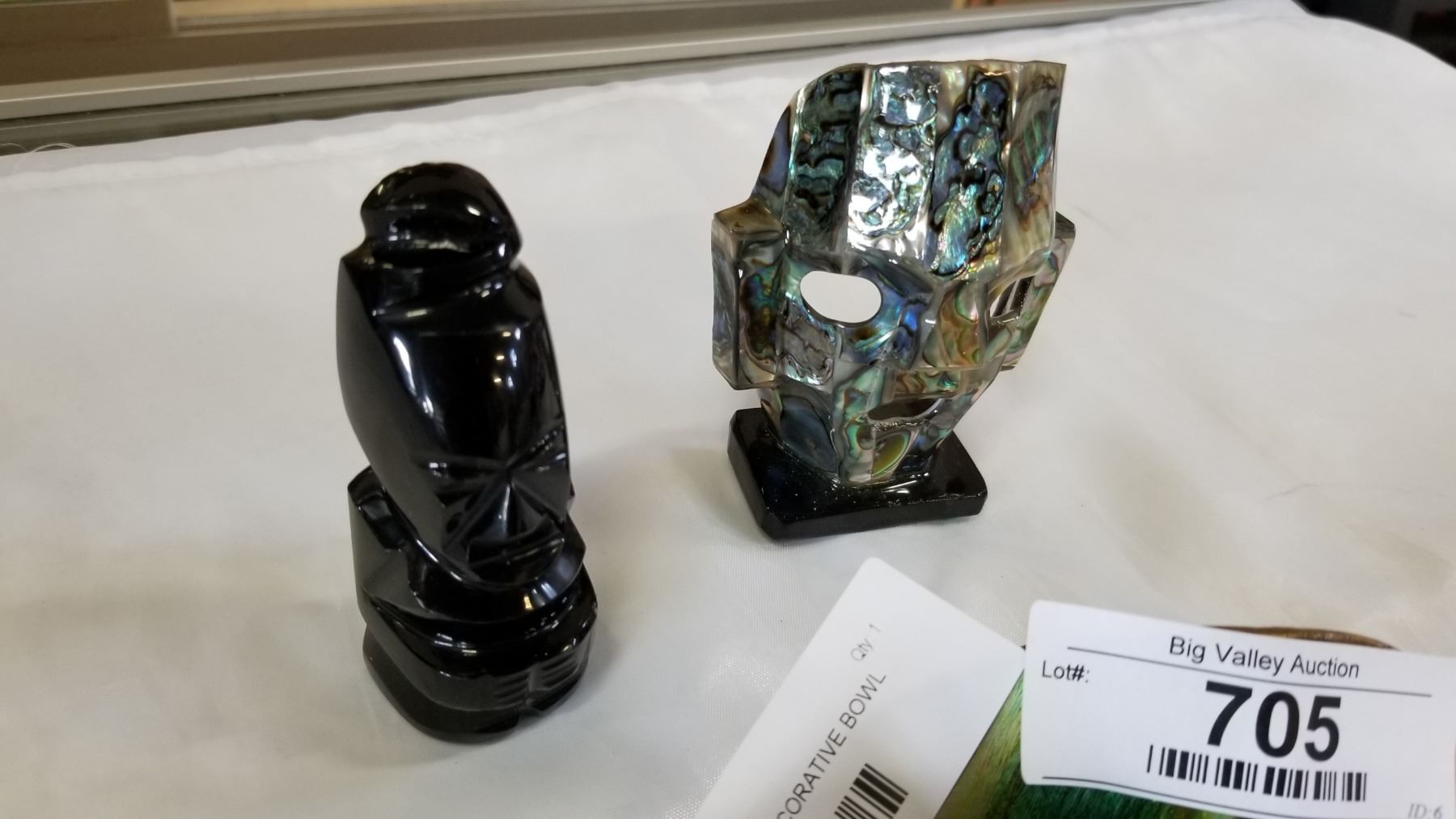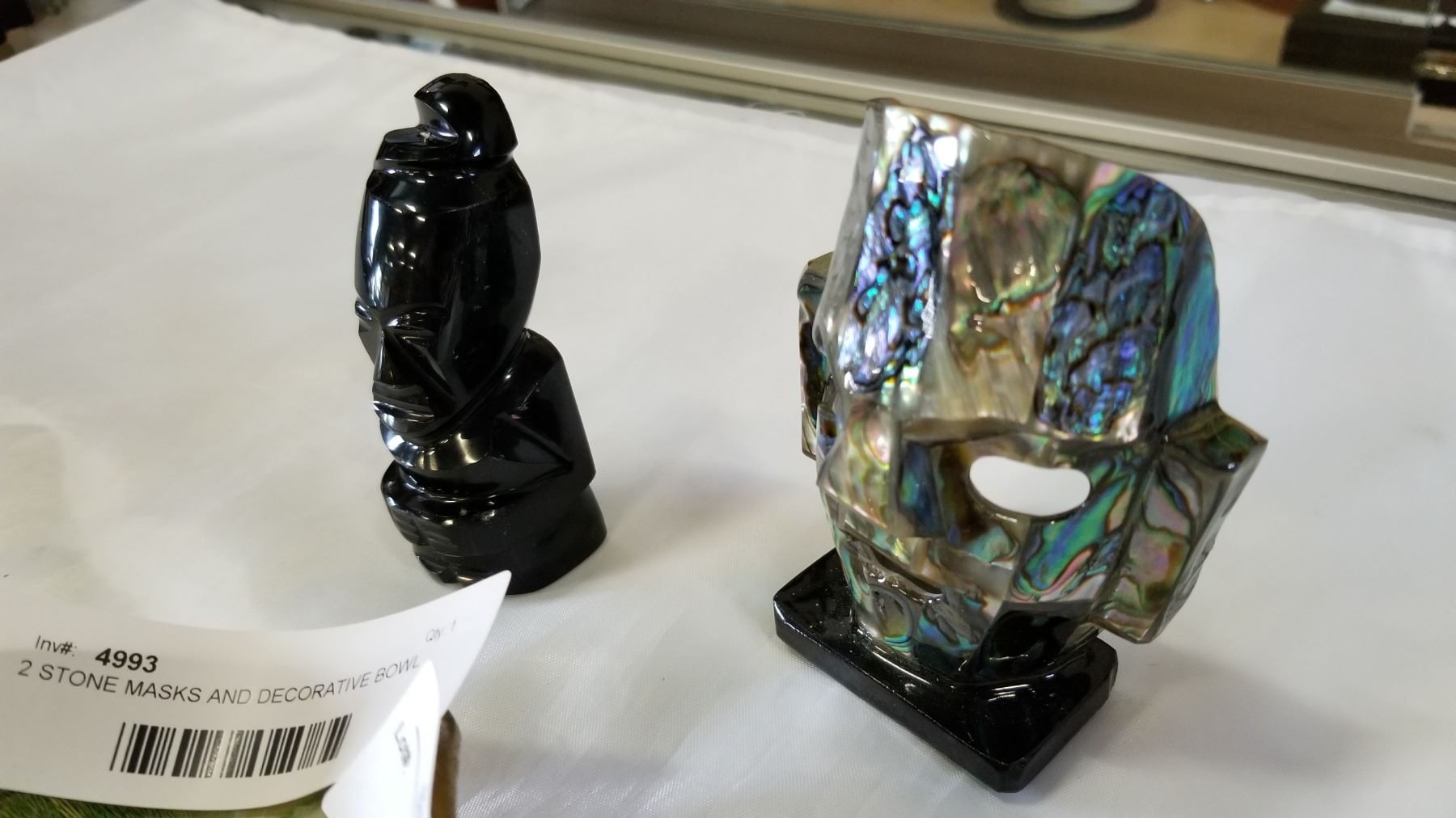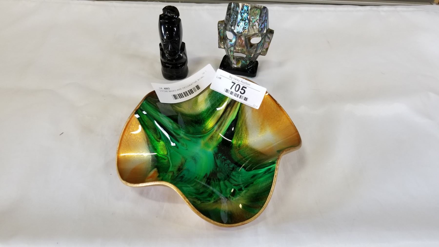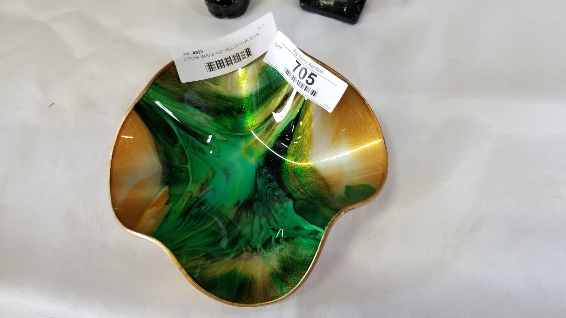 2 STONE MASKS AND DECORATIVE MAYFAIR BOWL