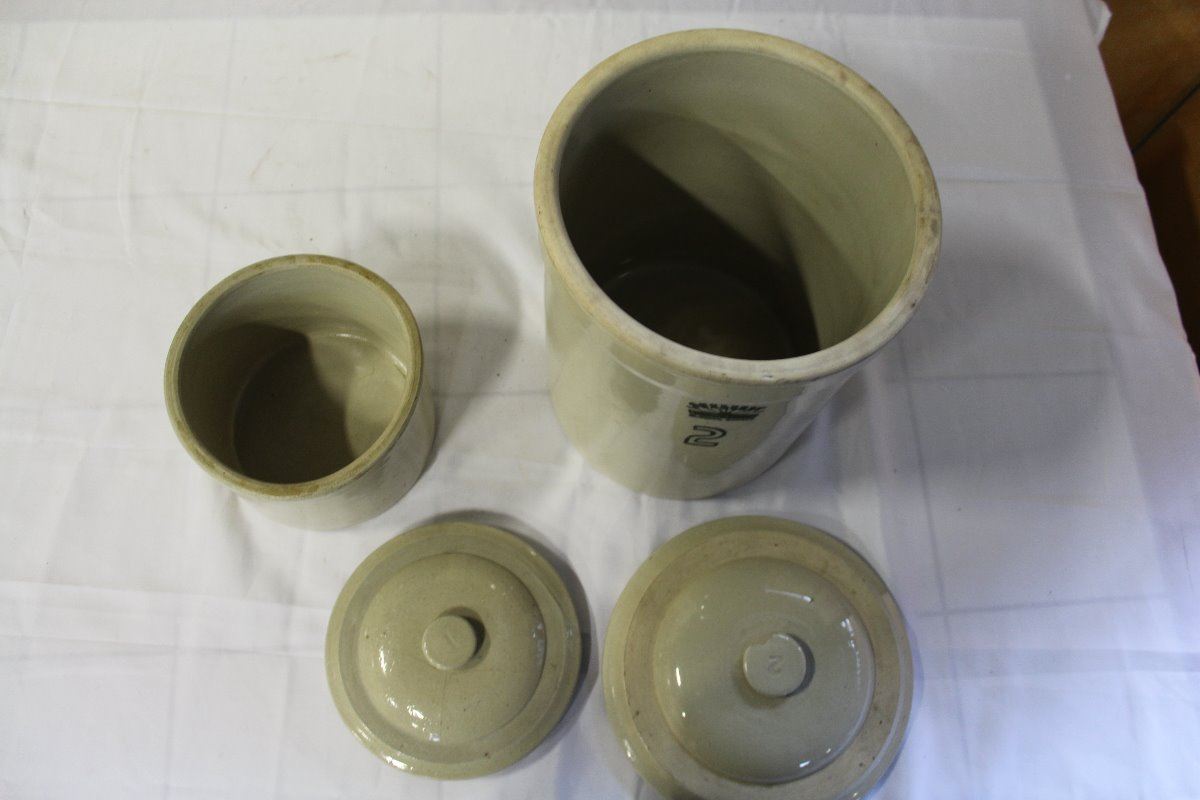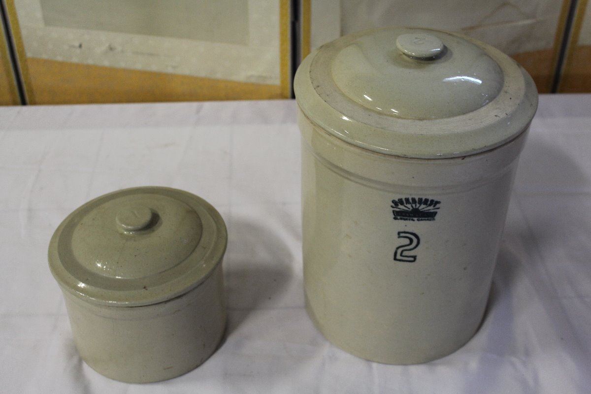 #2 SUNHURST LIDDED CROCK AND SMALL LIDDED CROCK