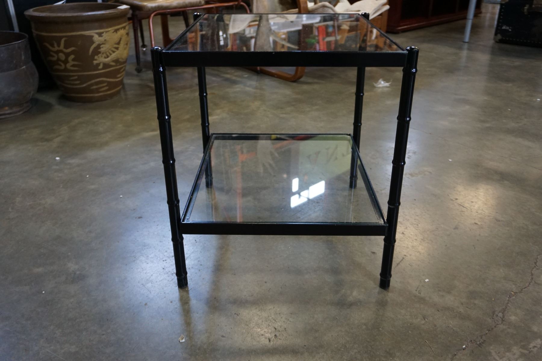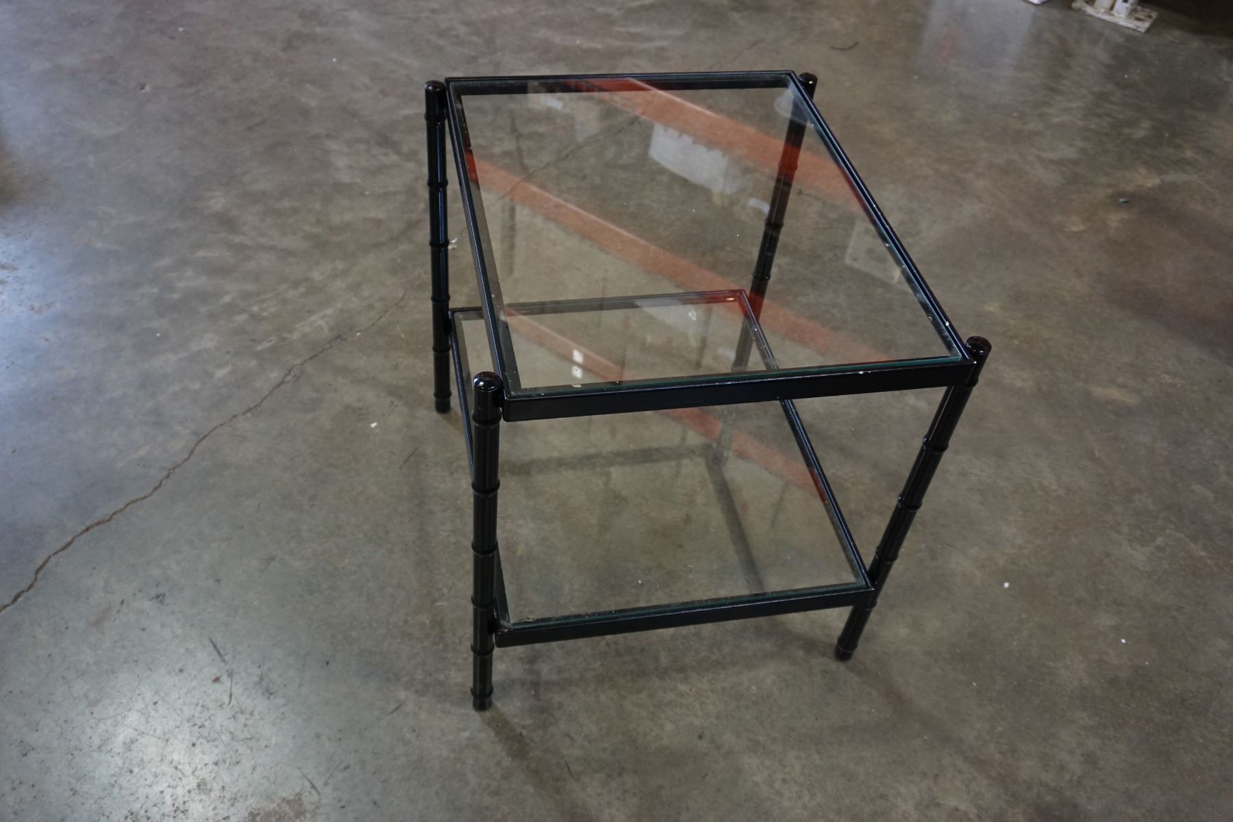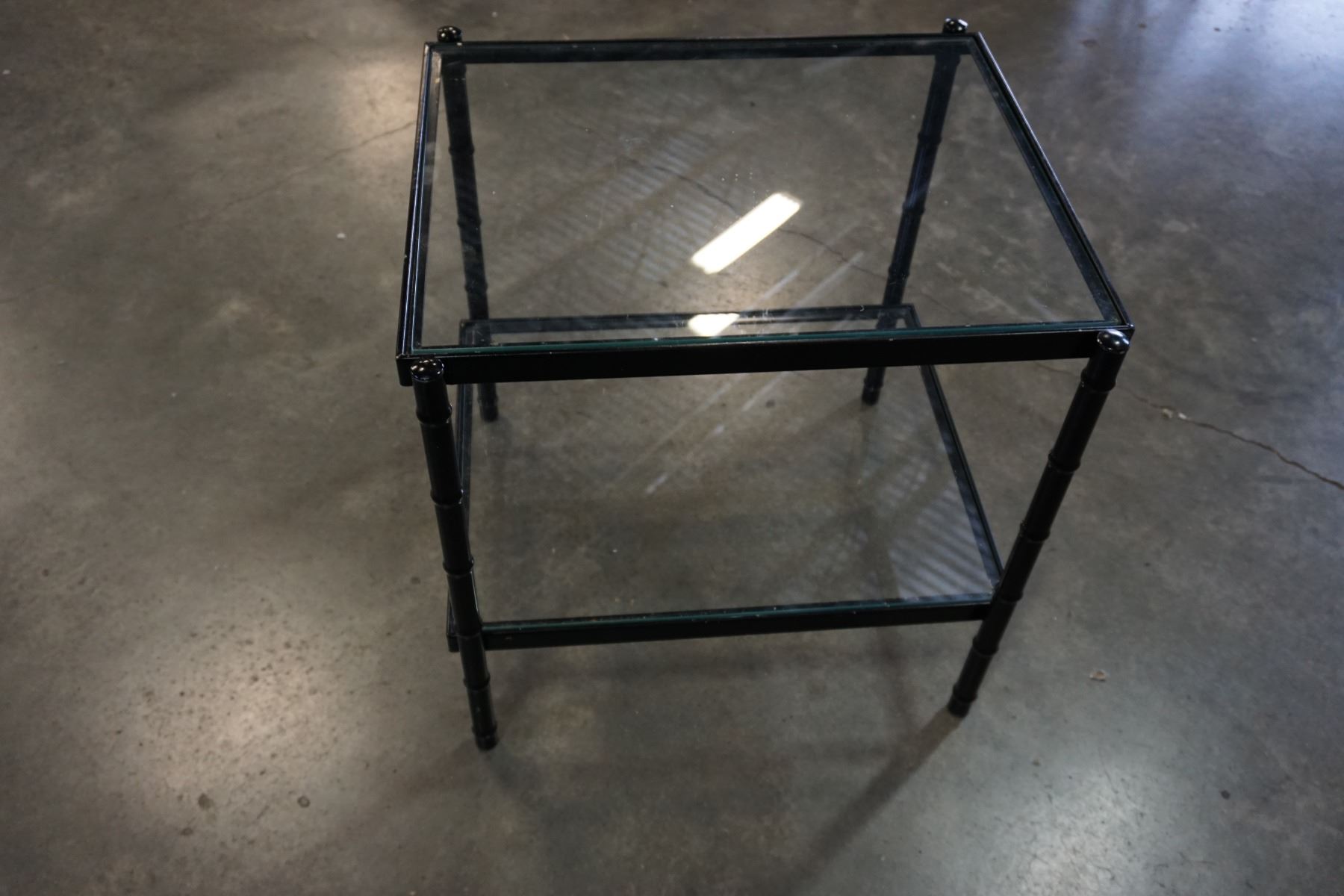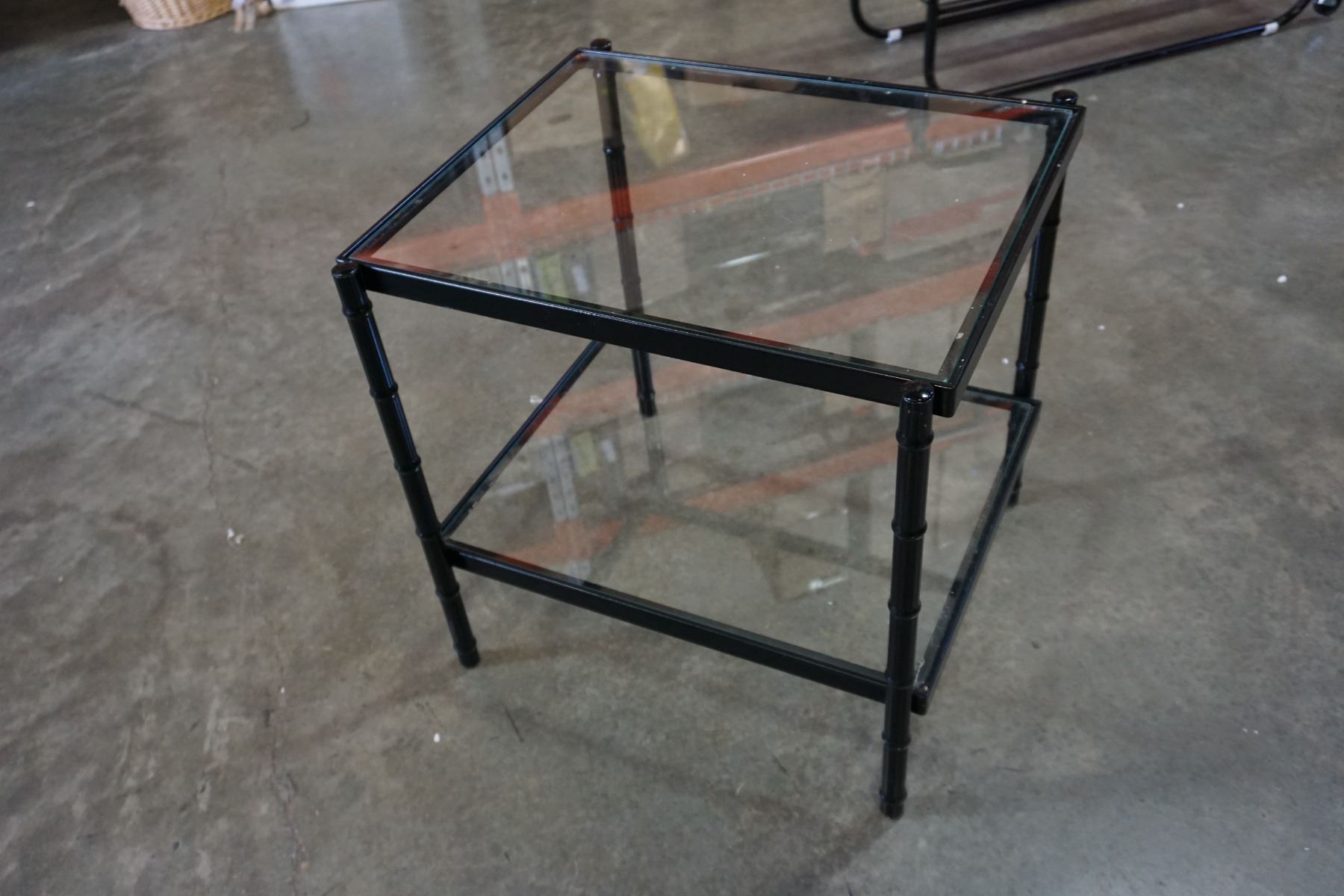 2-TIER BLACK AND METAL AND GLASS END TABLE