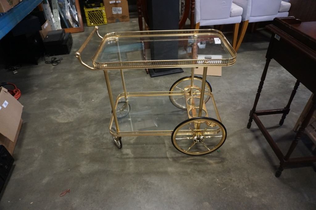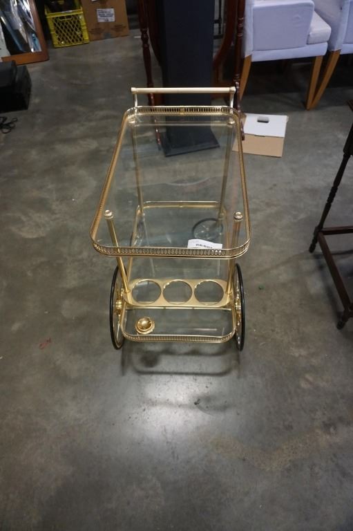 2 TIER BRASS AND GLASS TEA TROLLEY