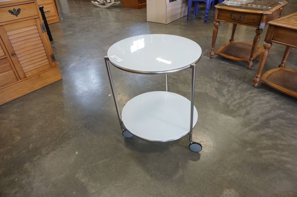 2 TIER ROUND MODERN METAL ROLLING GLASSTOP ENDTABLE