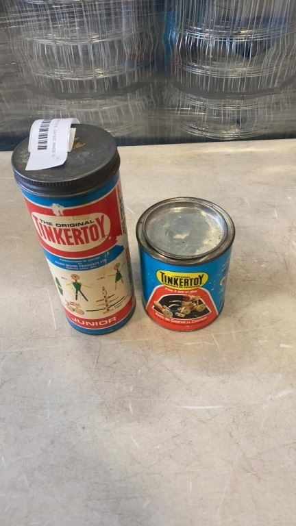 2 TINS OF TNKERTOYS - CA1937 MADE IN FENTON FALLS AND 1960