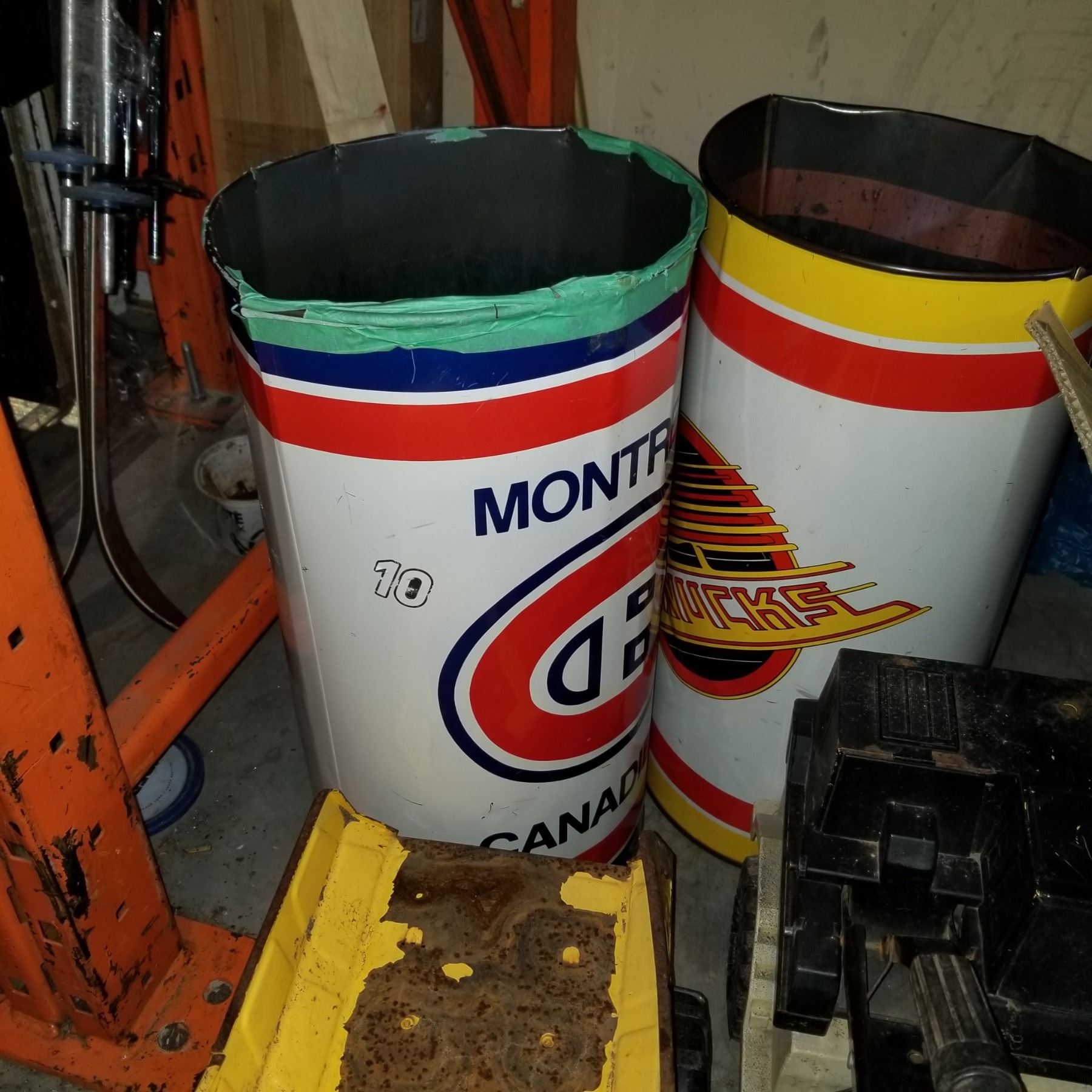 2 TONKA TRUCKS AND 2 NHL WASTE BINS