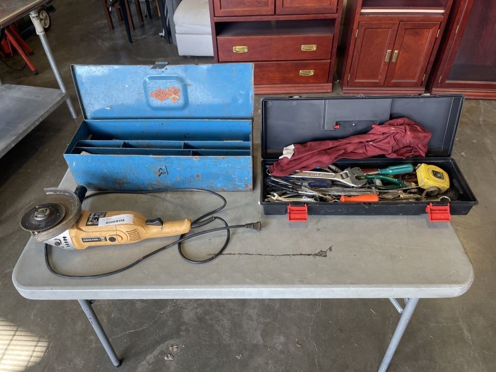 2 TOOL BOXES WITH CONTENTS AND ANGLE GRINDER