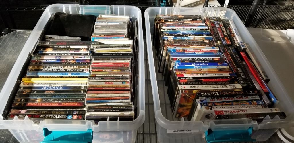 2 TOTES OF DVDS