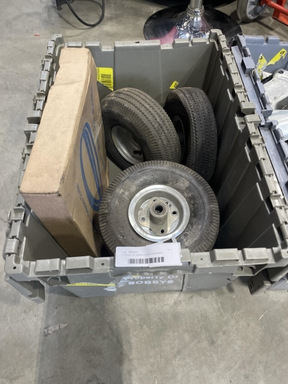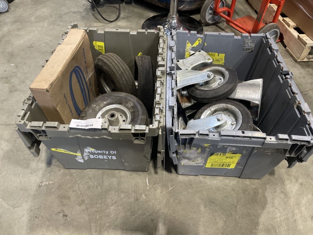 2 TOTES OF WHEELS AND CASTORS
