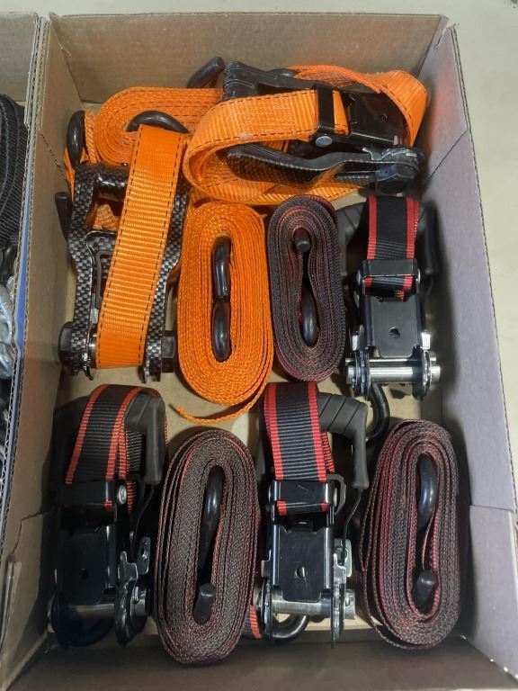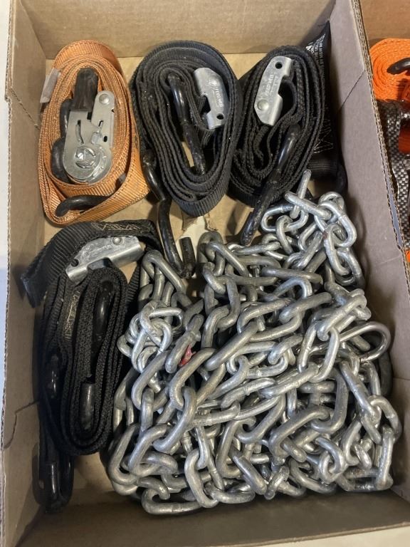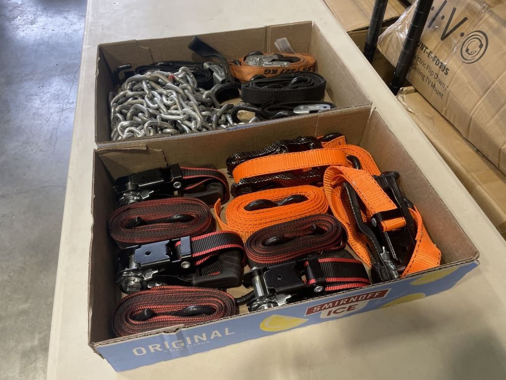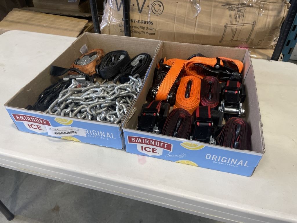 2 TRAYS IOF ASSORTED RATCHET STRAPS AND CHAIN
