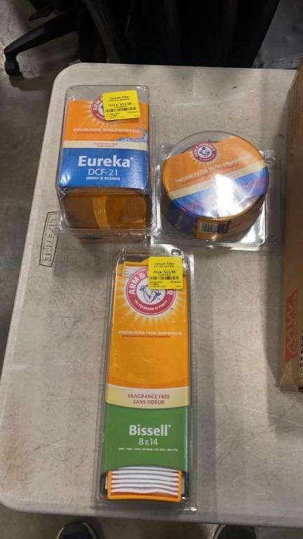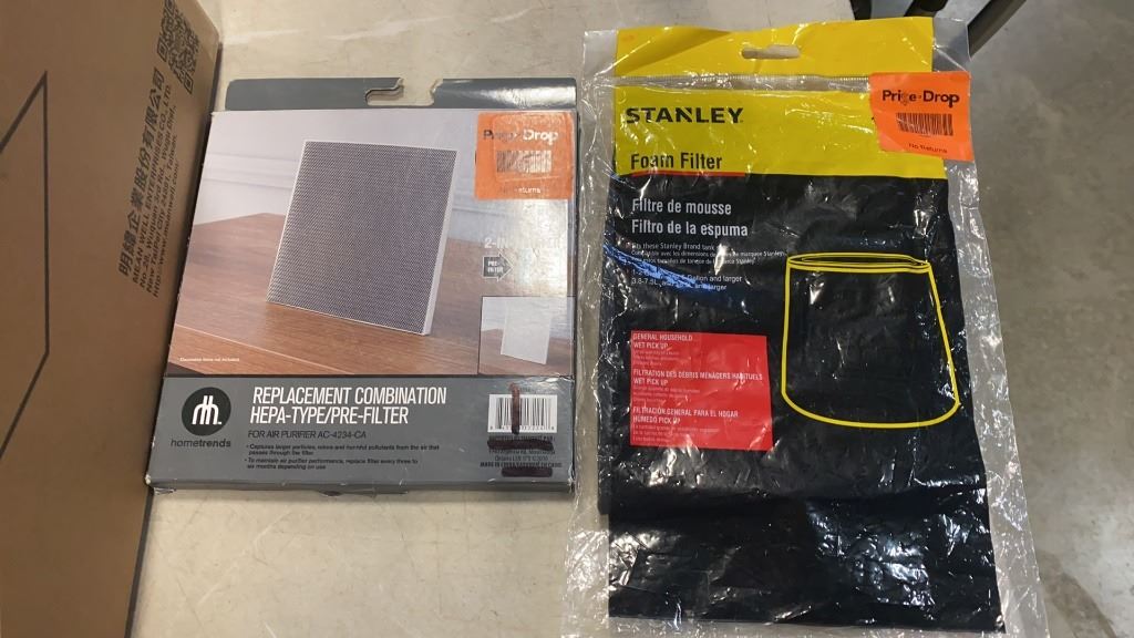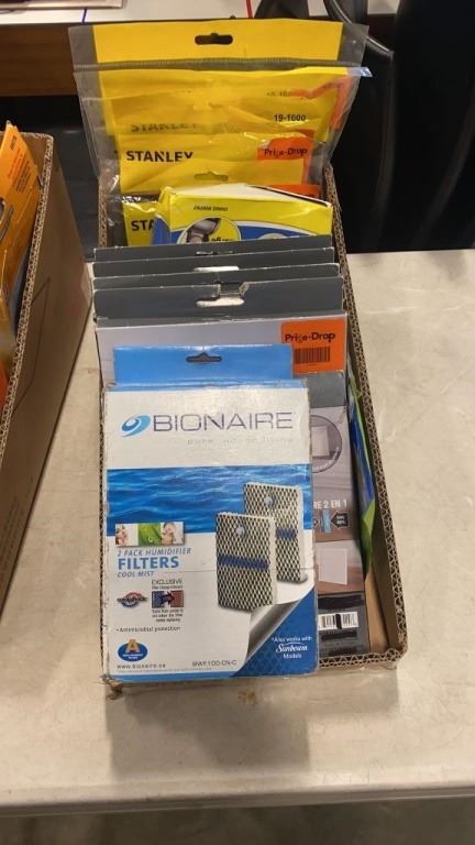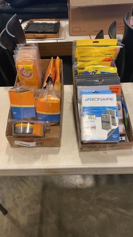 2 TRAYS OF AIR FILTERS - BIONAIRE, STANLEY, ARM AND HAMMER