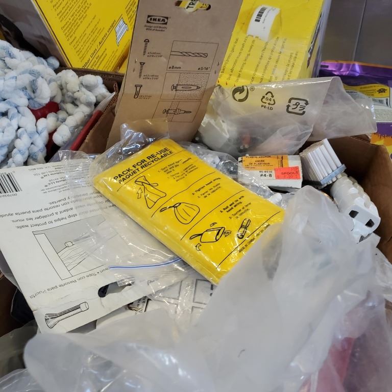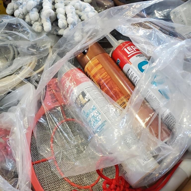 2 TRAYS OF ASSORTED SHOP SUPPLY AND HARDWARE, CAULK ETC