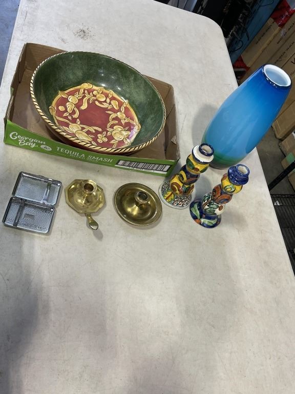2 TRAYS OF COLLECTIBLE POTTERY AND ART GLASS