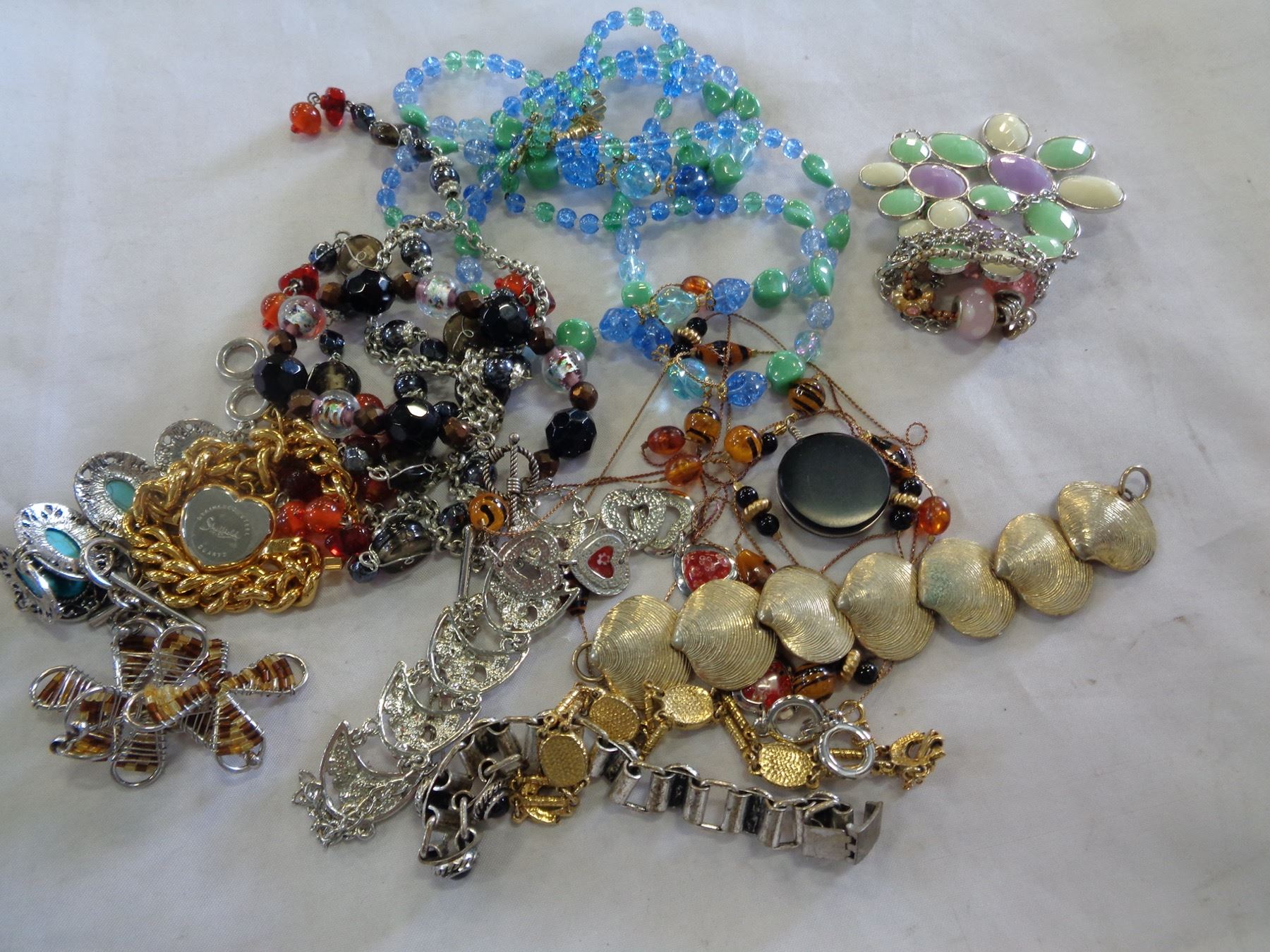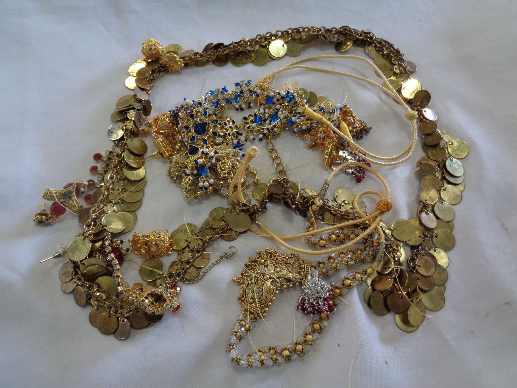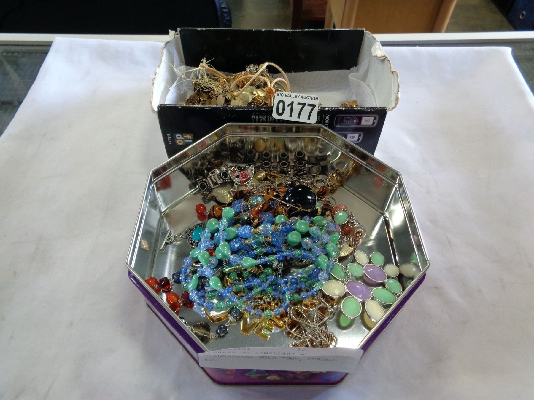 2 TRAYS OF JEWELLERY - RHINESTONE, GOLD TONE, BEADED, ETC