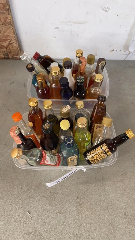 2 TRAYS OF MINIATURE COLLECTIBLE LIQUOR BOTTLES APPROX 30 - MOST SEALED