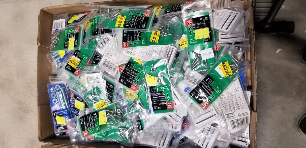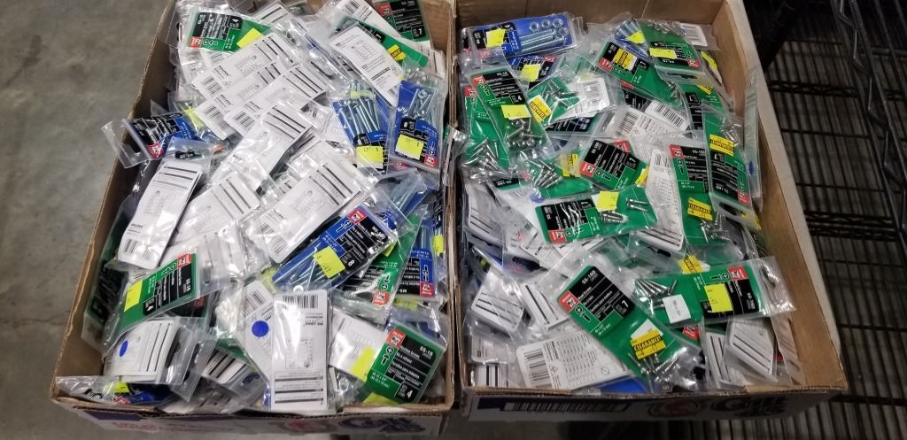 2 TRAYS OF NEW ASSORTED HARDWARE, NUTS, BOLTS, SCREWS ETC
