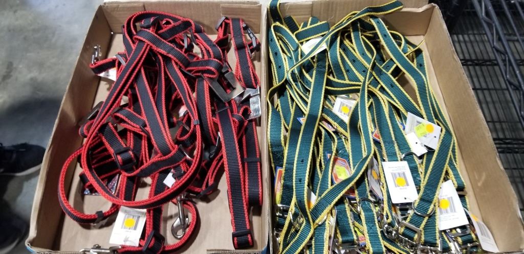 2 TRAYS OF NEW DOG COLLARS AND HARNESSES