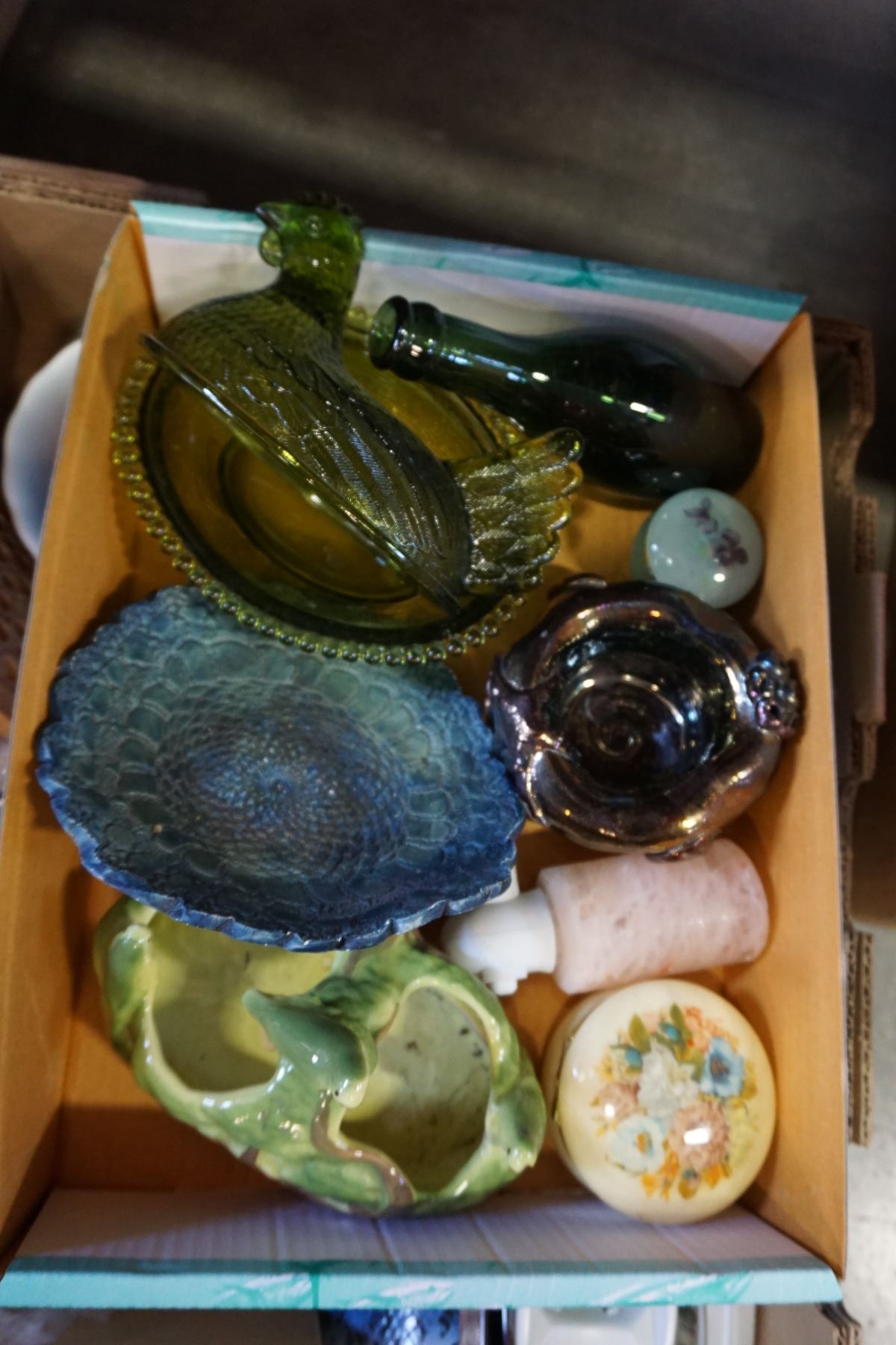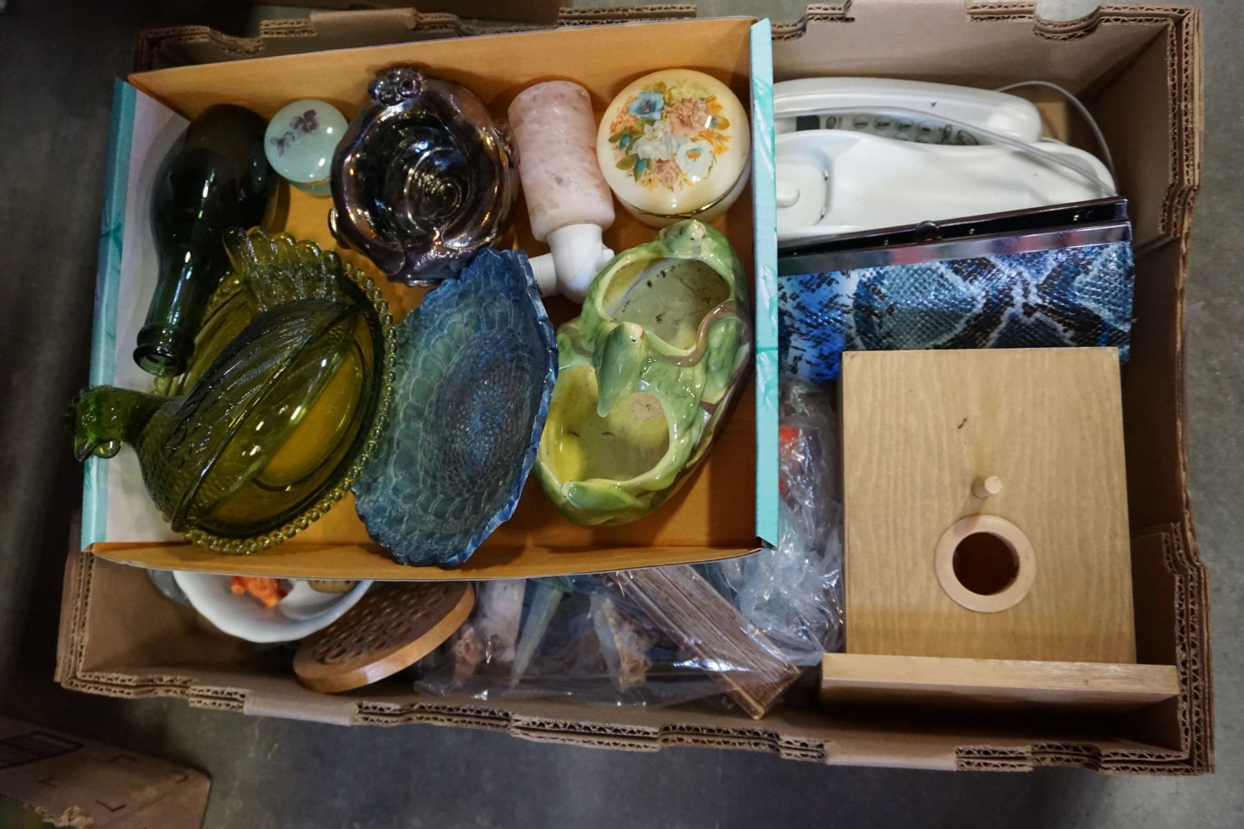 2 TRAYS OF POTTERY AND ESTATE GOODS